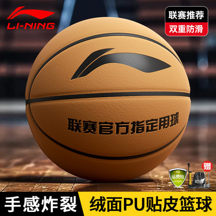 李宁篮球正品官方旗舰店翻毛皮7号真牛皮手感室内外比赛专用蓝球