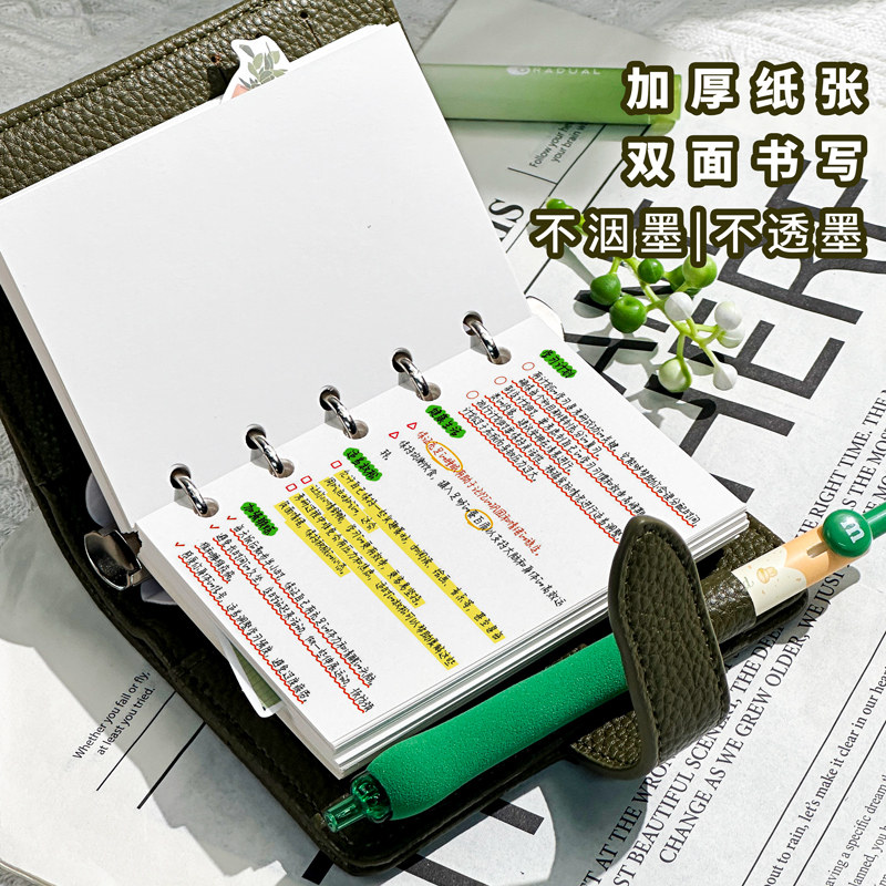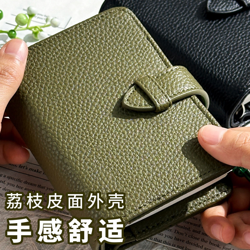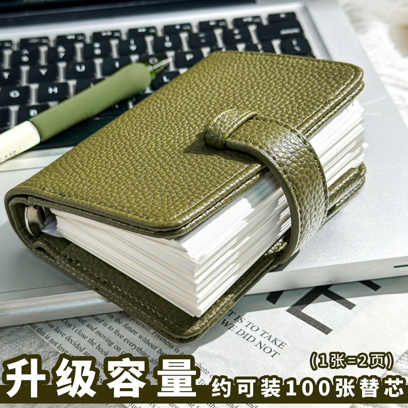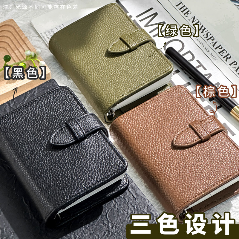 新款简约荔枝皮面M5活页本大容量可拆卸空白手账本5孔随身计划小本子可收纳卡位纸币三合一日程本记事本