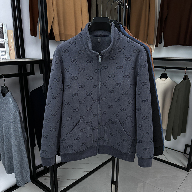 双面绒立领印花卫衣开衫男外套秋冬季男士加厚抓绒摇粒绒拉链夹克