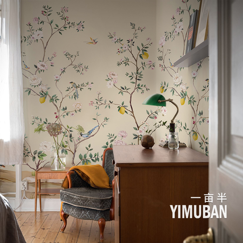 美式花鸟定制壁画电视背景墙壁纸客厅卧室沙发壁纸壁布饭厅墙布
