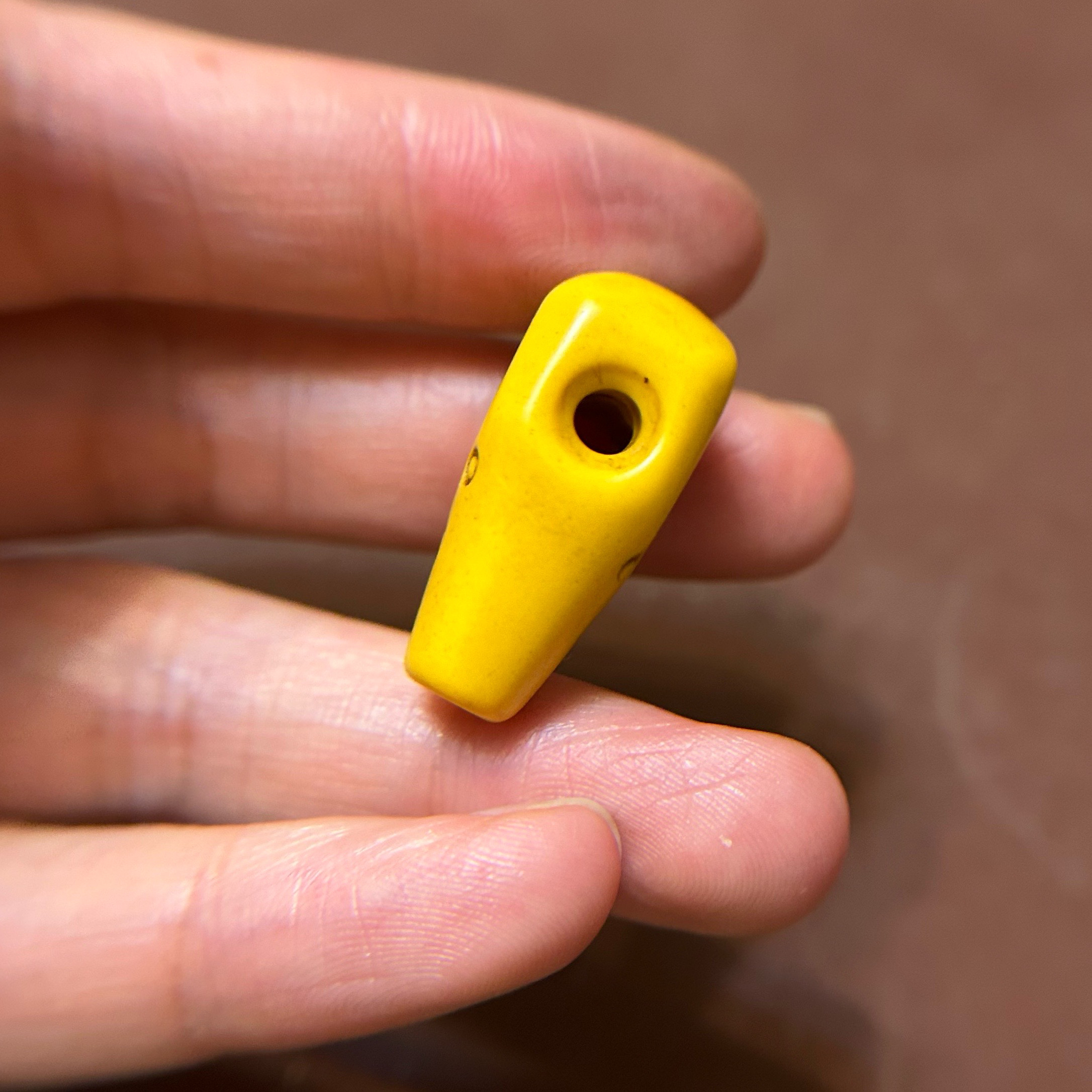 15mm老黄料器三通佛头一体式藏区回流咒点手工雕刻藏传文玩配饰品