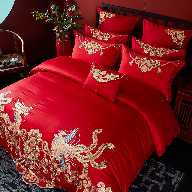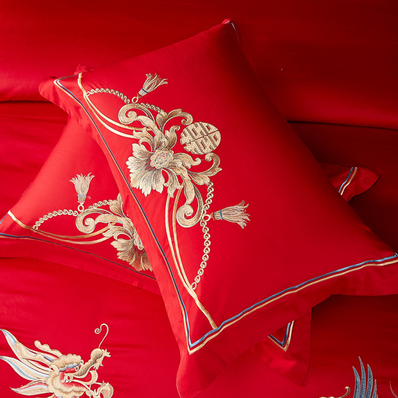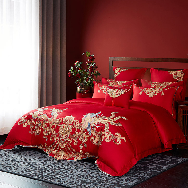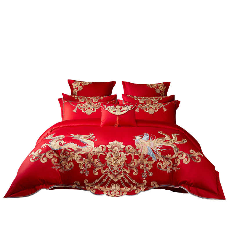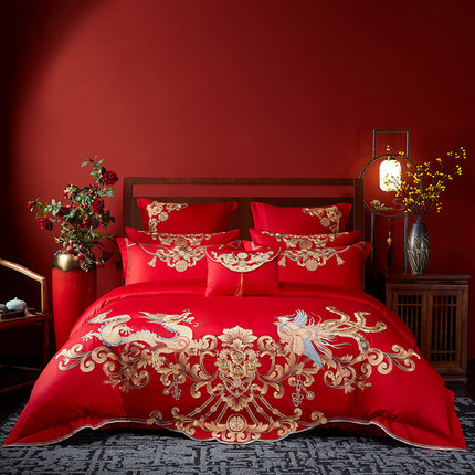 结婚四件套婚庆大红色全棉刺绣床单婚嫁床品喜被床盖十件套1.8m床