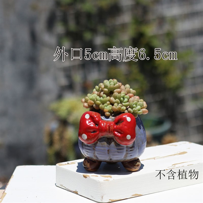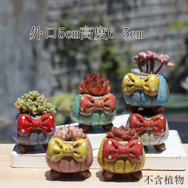 韩式多肉花盆蝴蝶结盆粗陶透气拇指盆创意小口径控养陶瓷花盆包邮