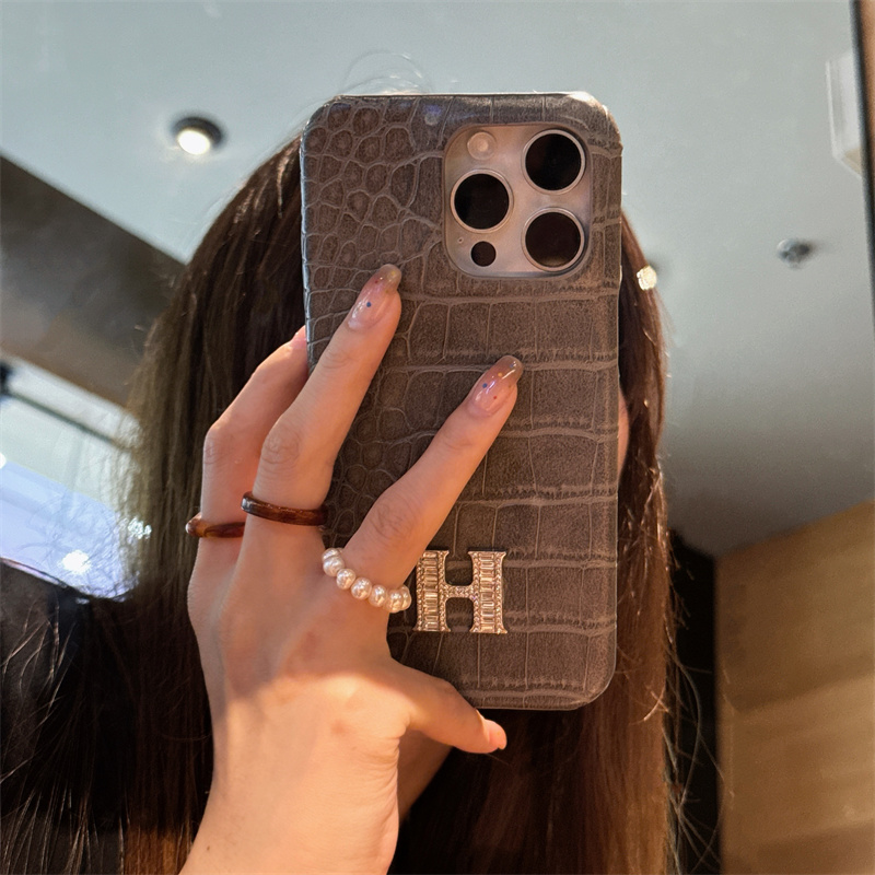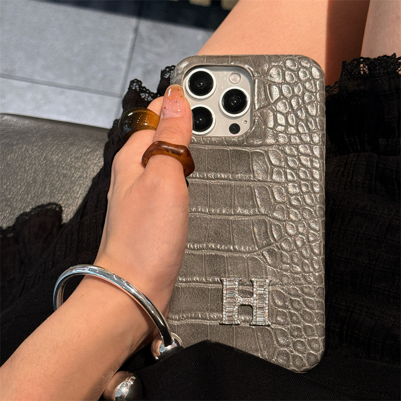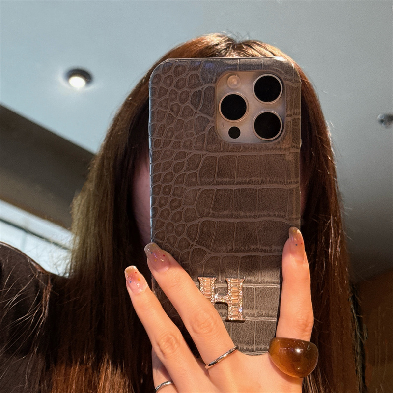 高档时尚皮质适用于iPhone15ProMax手机壳16苹果14pro保护套硬壳鳄鱼纹13pm女款12潮牌11高级感水钻防摔小众