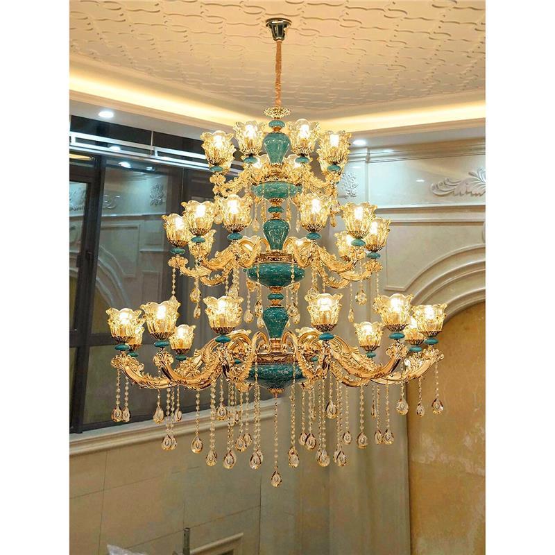热销复式楼别墅大空客厅水晶陶瓷楼中楼挑吊灯楼梯长吊灯欧式法式