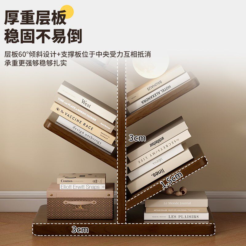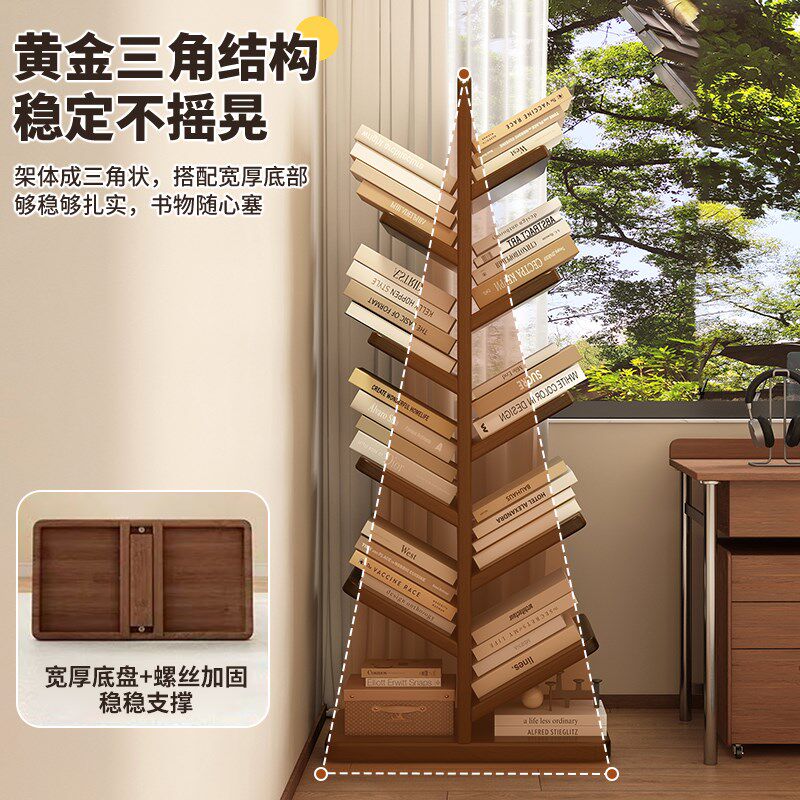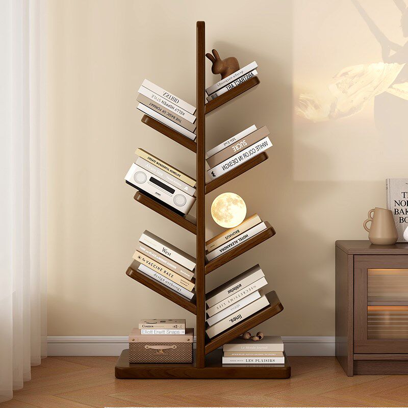 实木树形书架落地置物架客厅卧室家用创意书柜儿童学生书房收纳架
