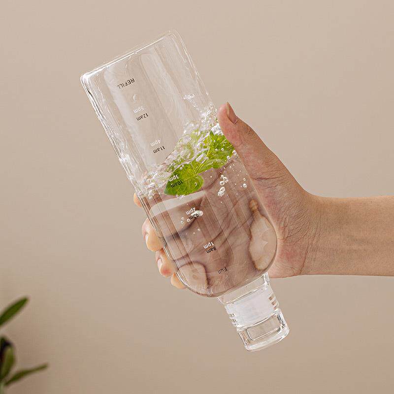 直销新款时间刻度透明玻璃水杯大容量咖啡果汁奶茶杯子夏季女便携