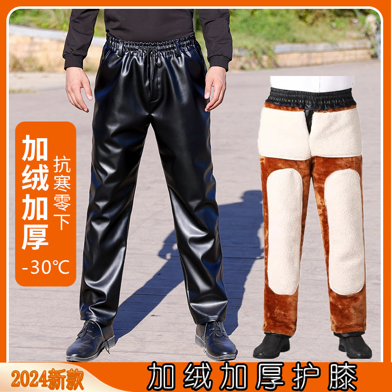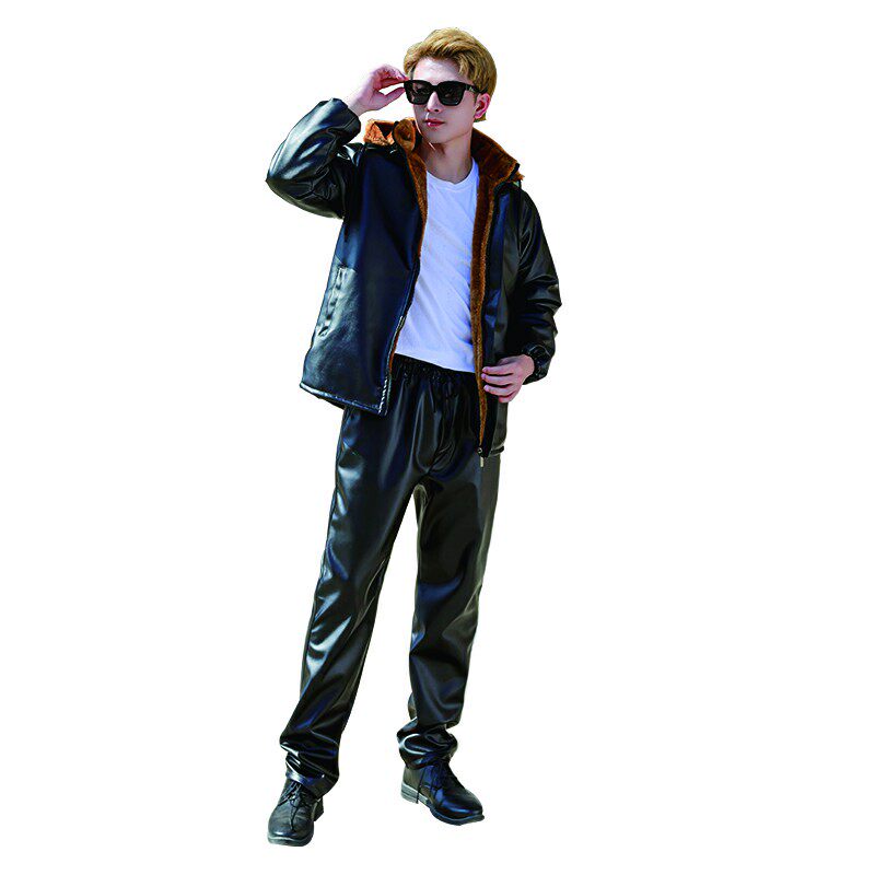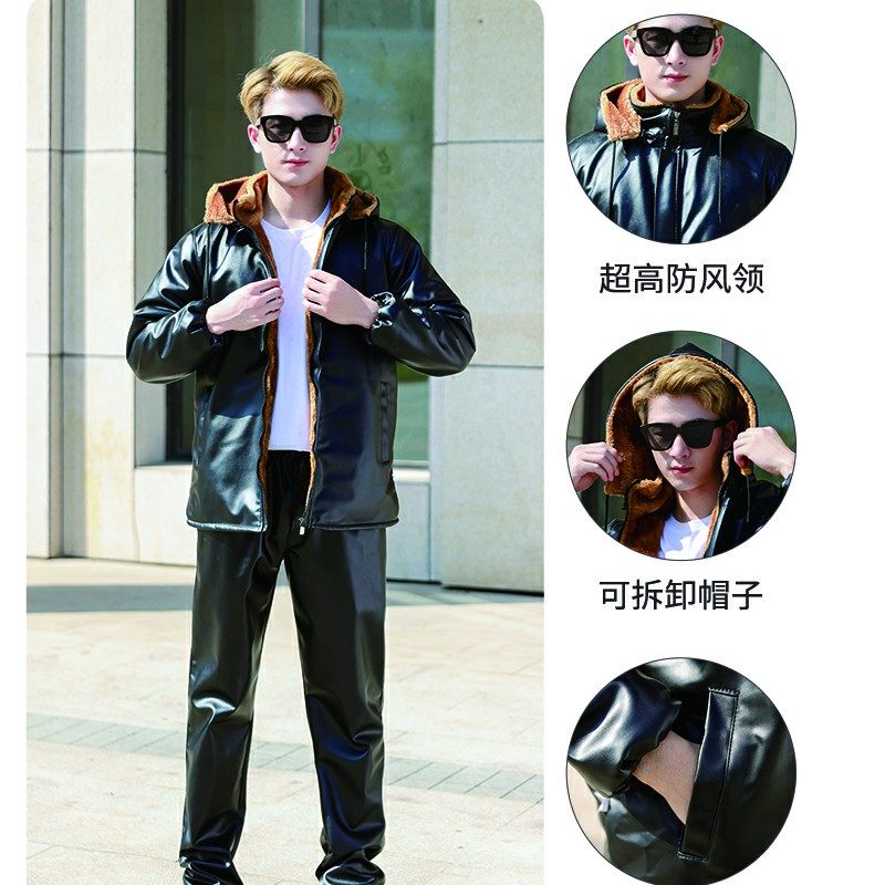 皮衣皮裤男工作服套装加绒加厚外卖机车挡风保暖立领棉衣连帽外套