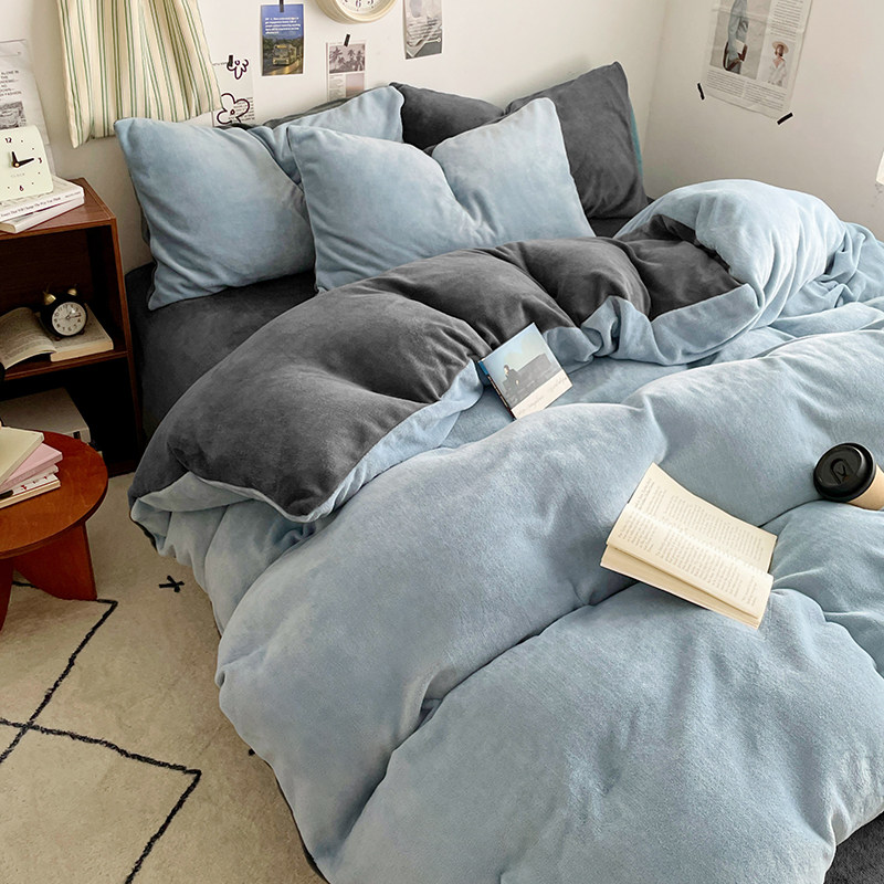 新款冬天牛奶绒四件套珊瑚绒床品双面法兰绒被套厚加绒床单三件套