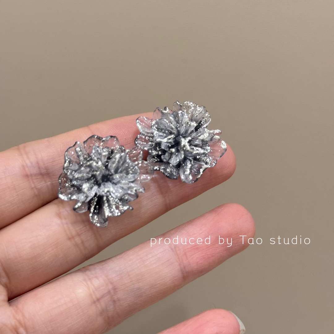 2024新款气质水晶耳钉韩国独特冰花耳环百搭高级感耳饰网红潮女