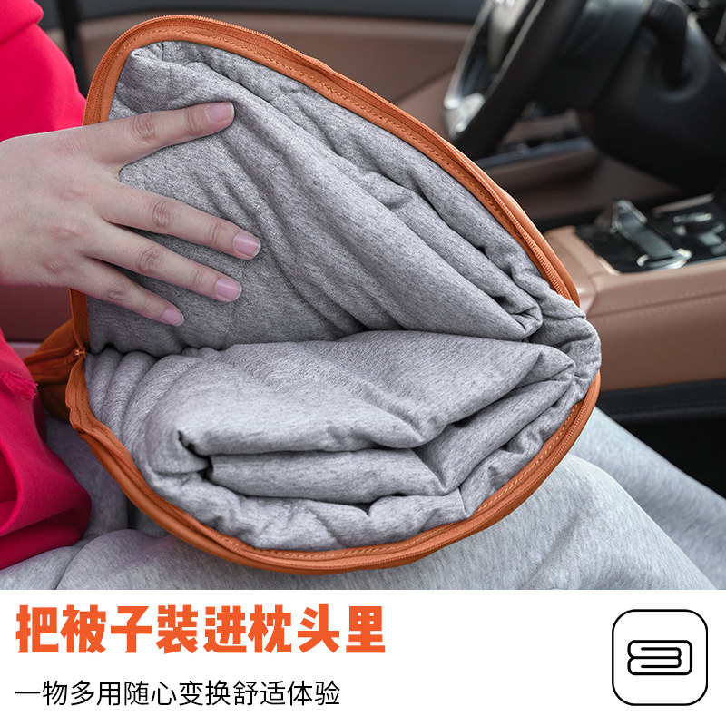莫兰迪汽车抱枕被子两用车内睡觉空调被适用于奔驰奥迪理想特斯拉