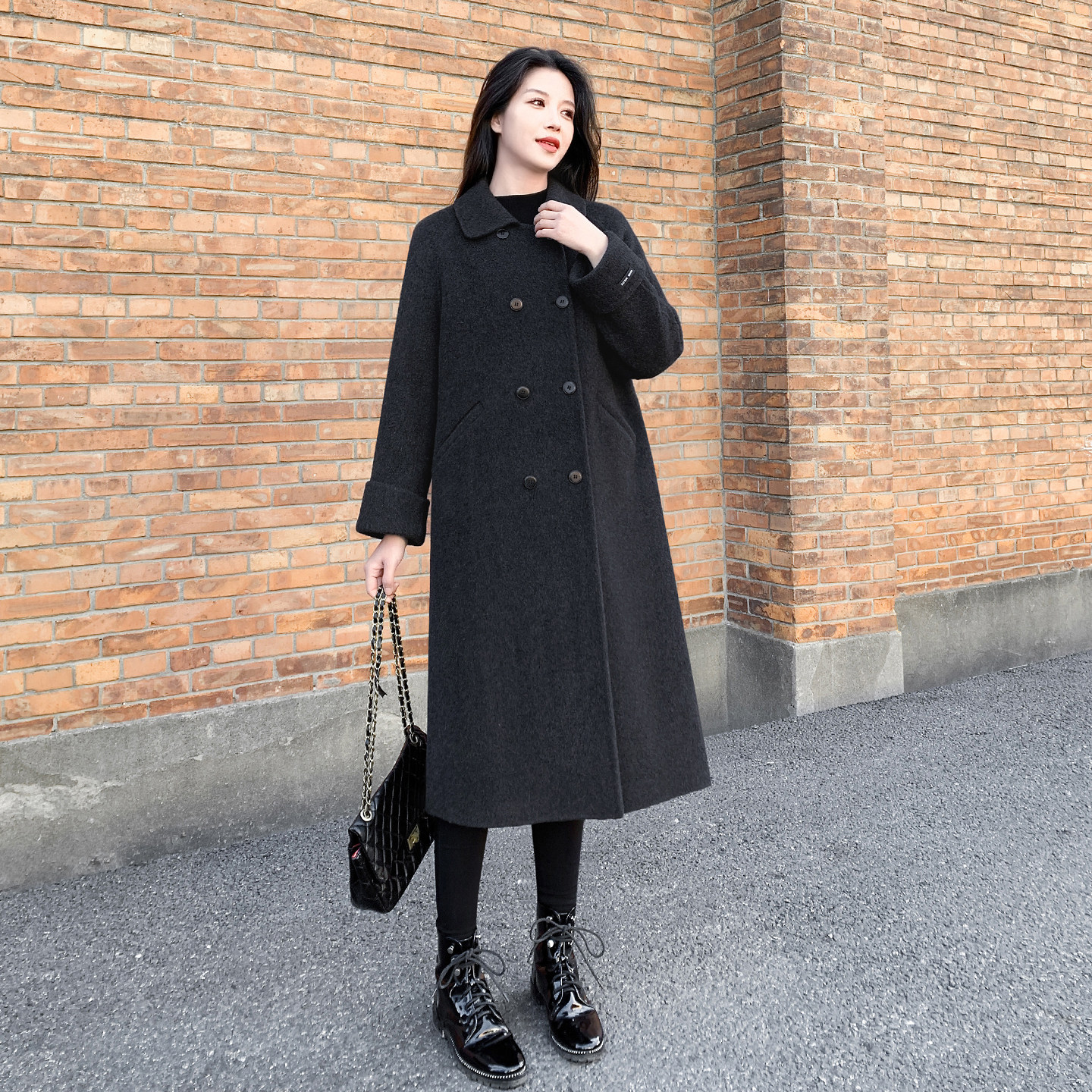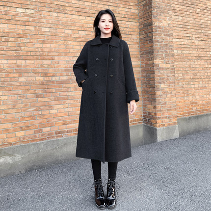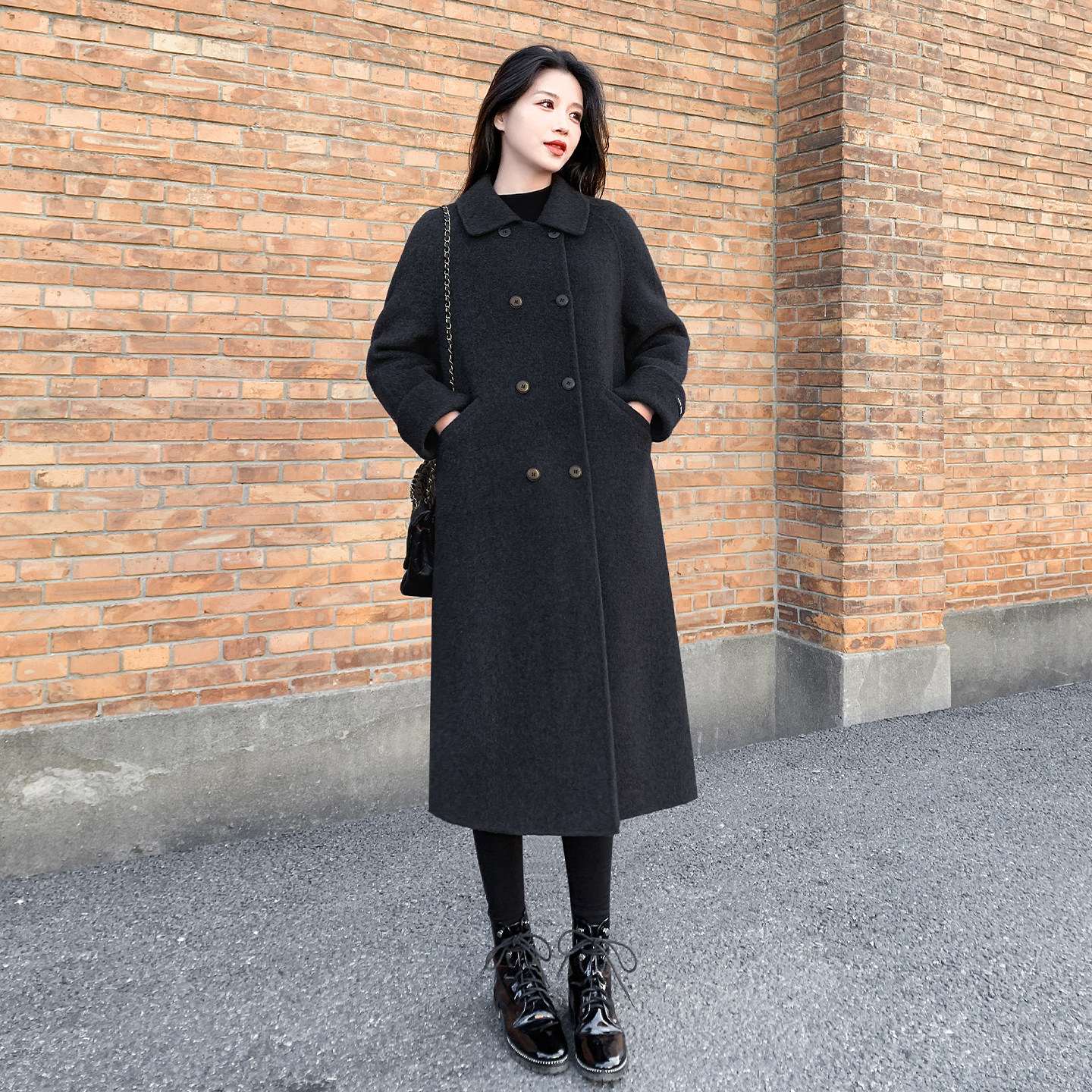 赫本风黑色双面羊绒大衣女小个子中长款宽松减龄显瘦高端羊毛外套