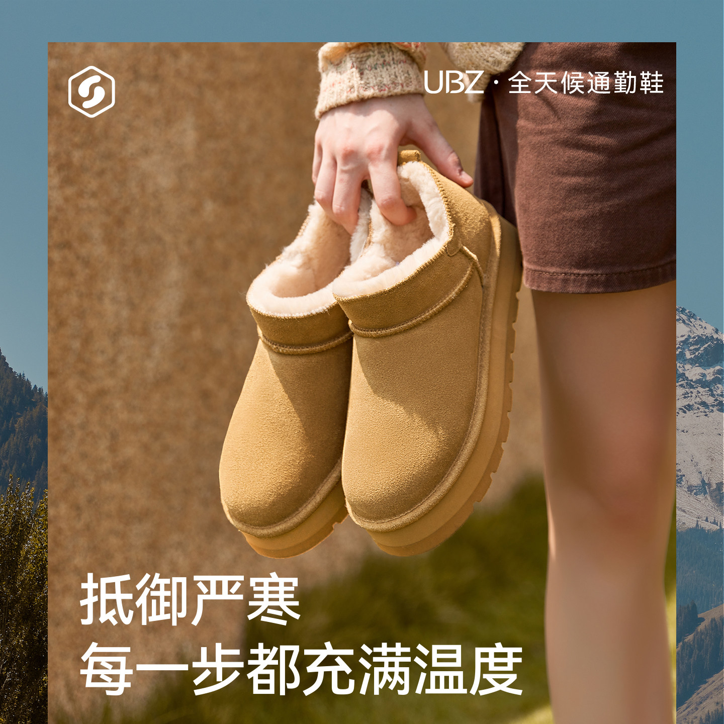 UBZ防水雪地靴加绒加厚防滑短筒