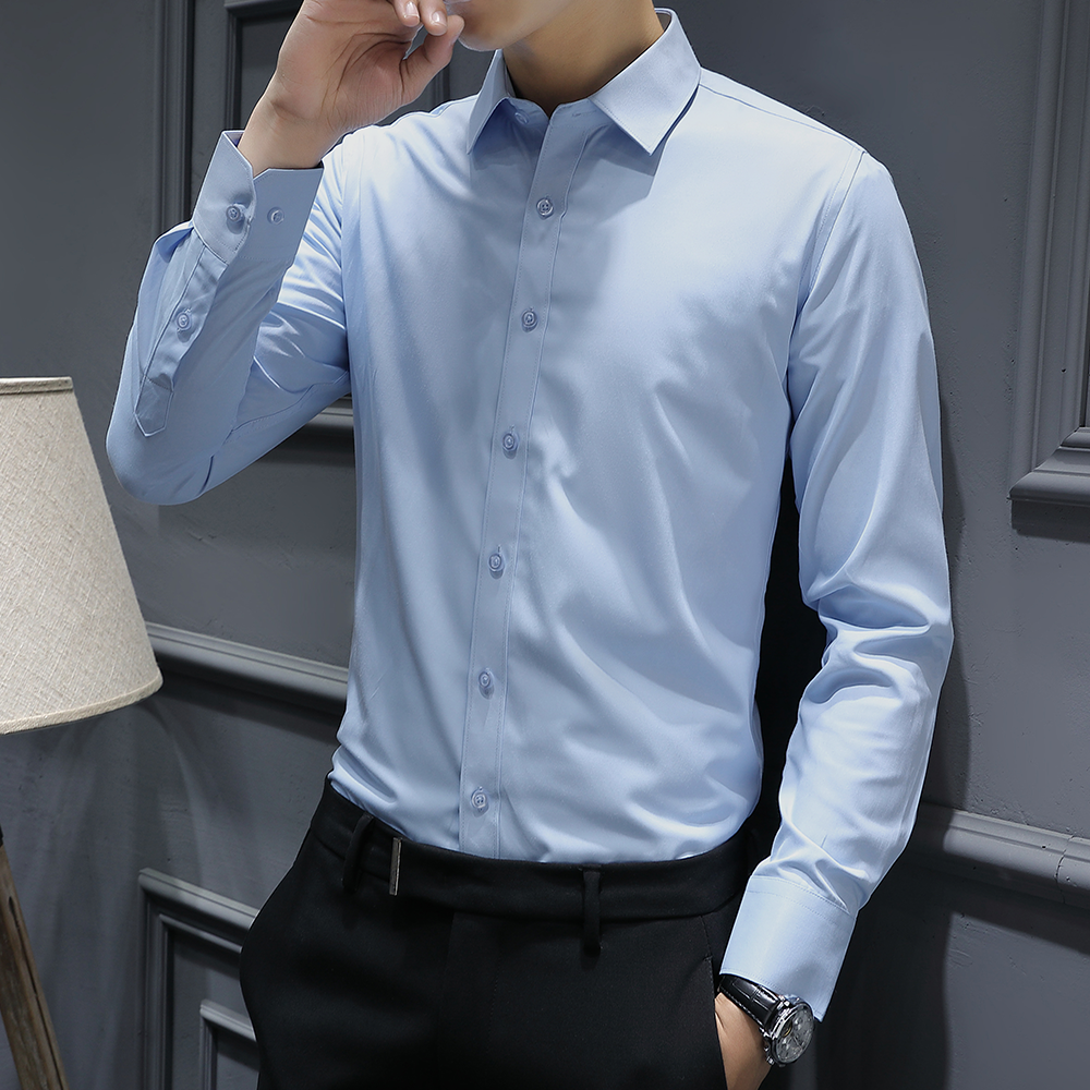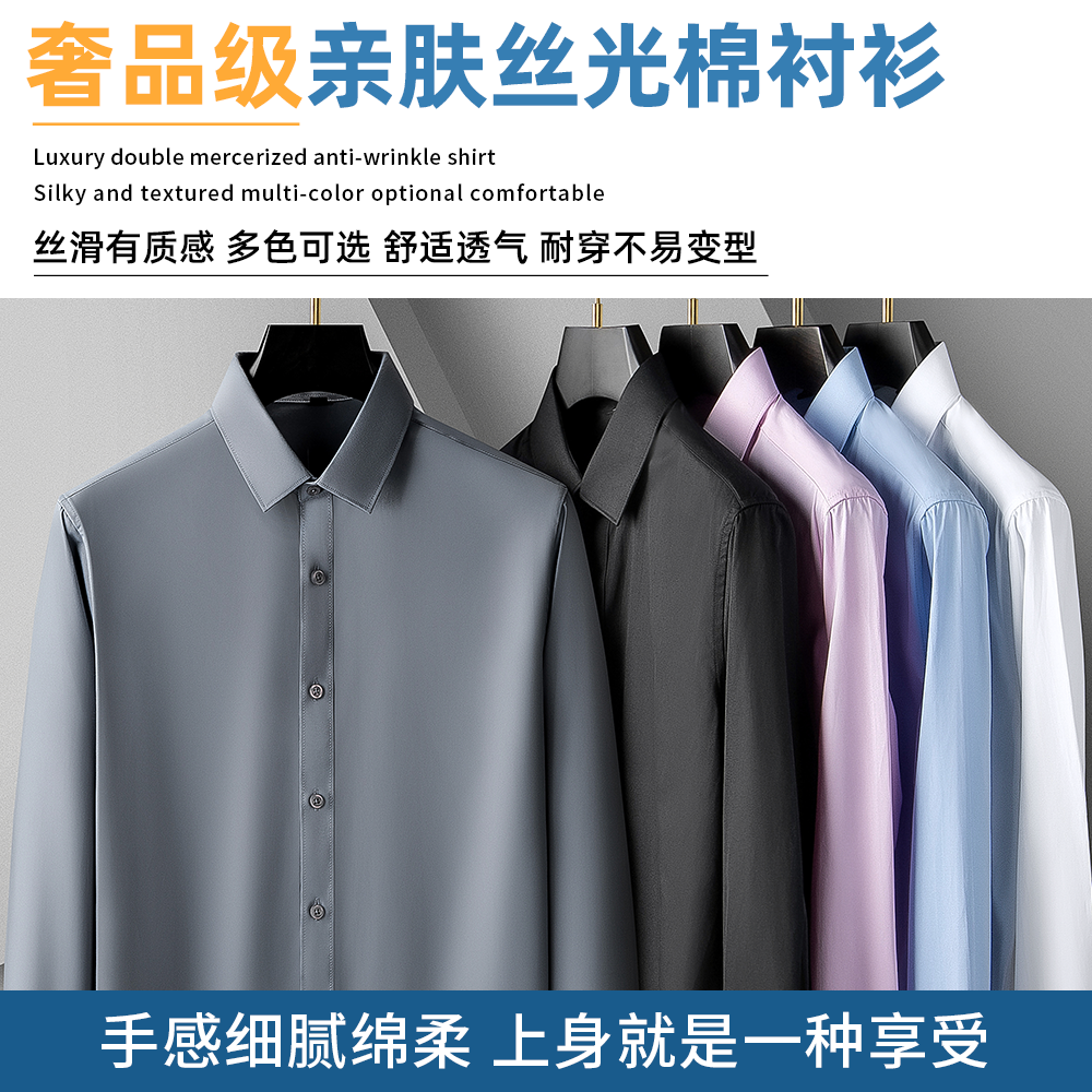 撤标撤柜(L)丝光棉衬衫男长袖春秋高级感白衬衣职业正装纯色寸衫