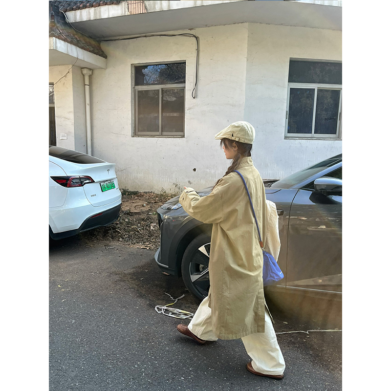 小众表妹卡其色风衣女早春韩版宽松中长款小个子休闲日系工装外套