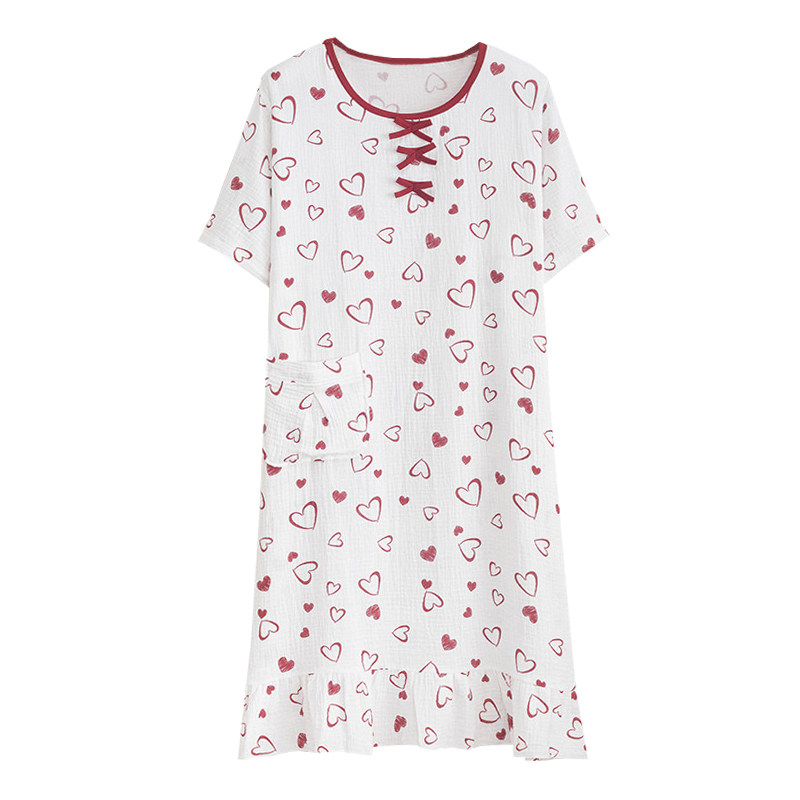 爱心印花纯棉纱布大码睡裙女夏季