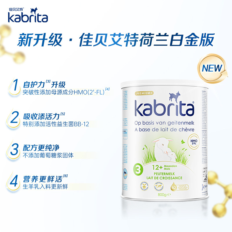 【自营】佳贝艾特荷兰版3段白金装升级婴幼儿配方羊奶粉三段3罐装