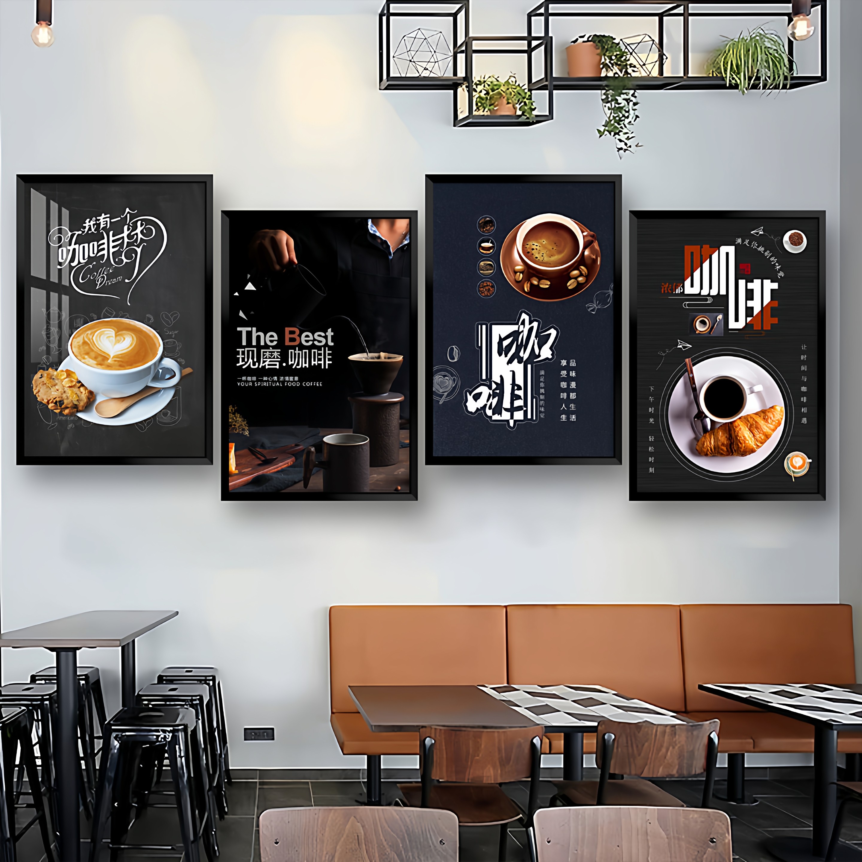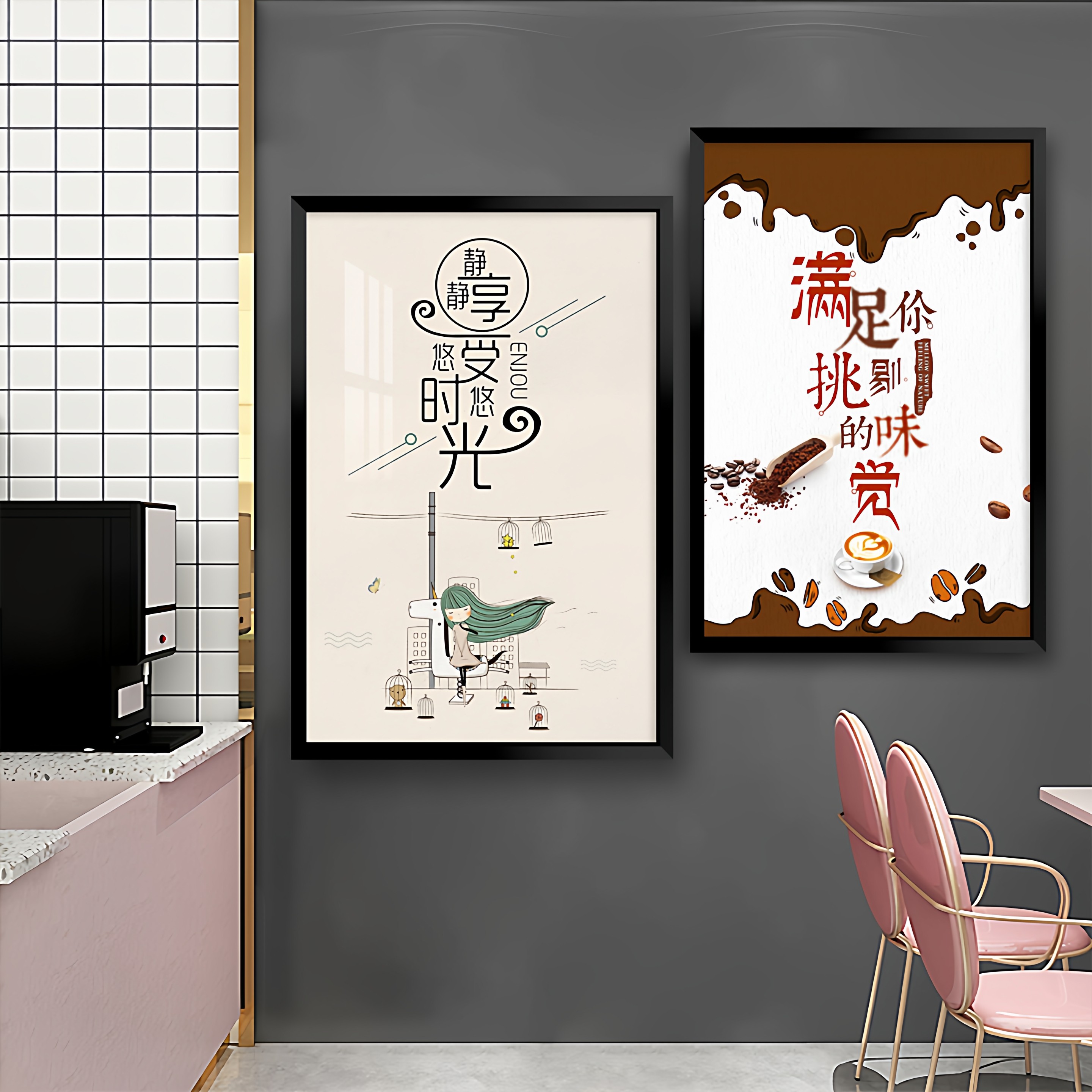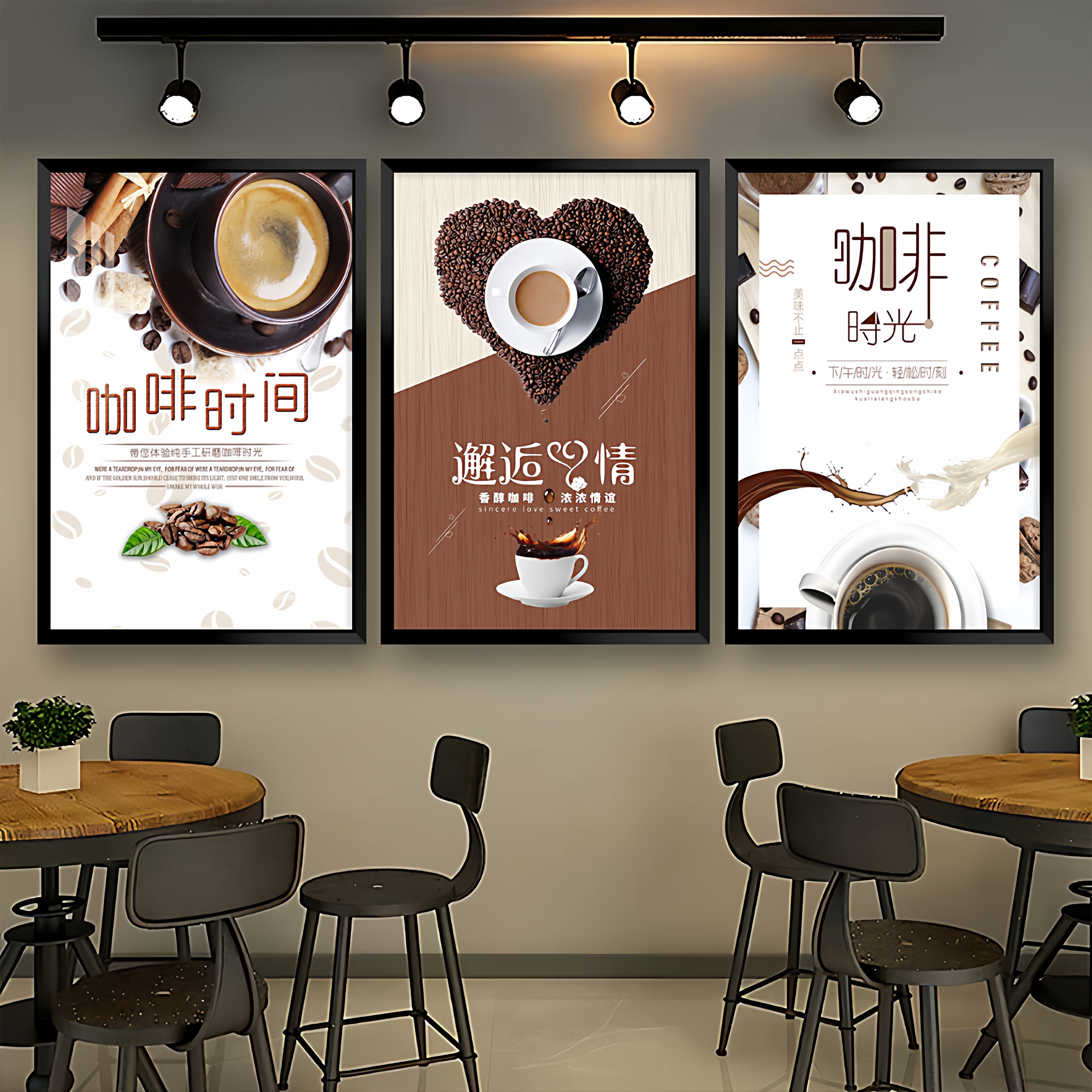 咖啡厅装饰画美式咖啡馆背景墙挂画奶茶卡布奇诺墙面壁画宣传画