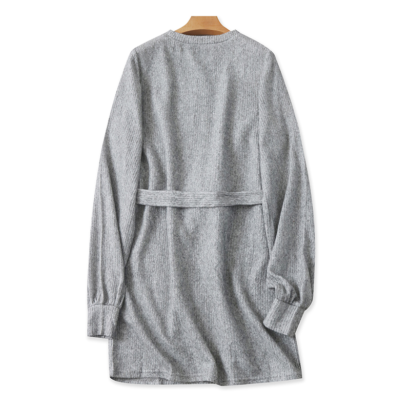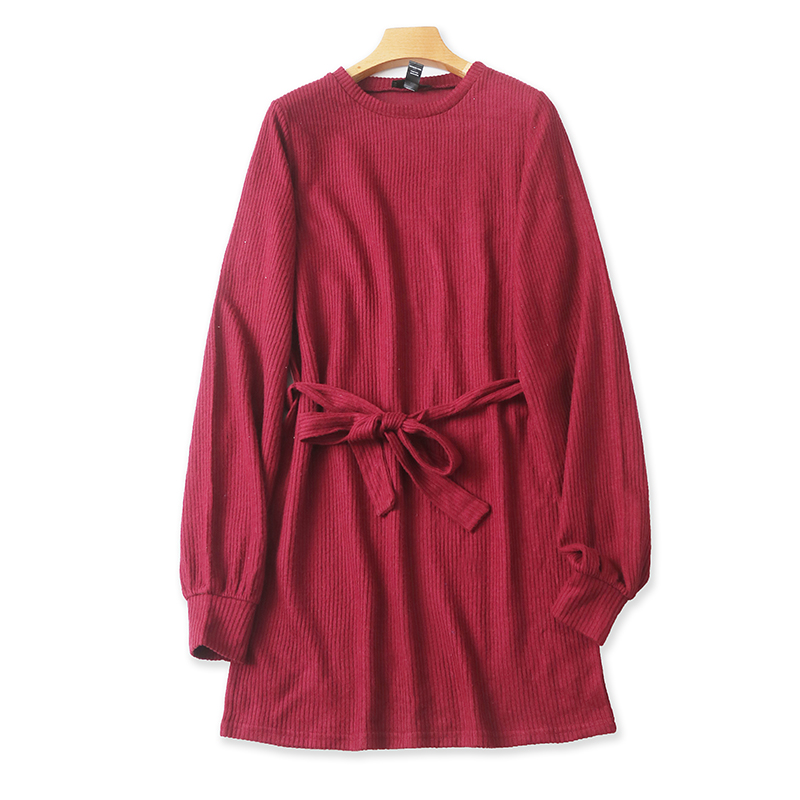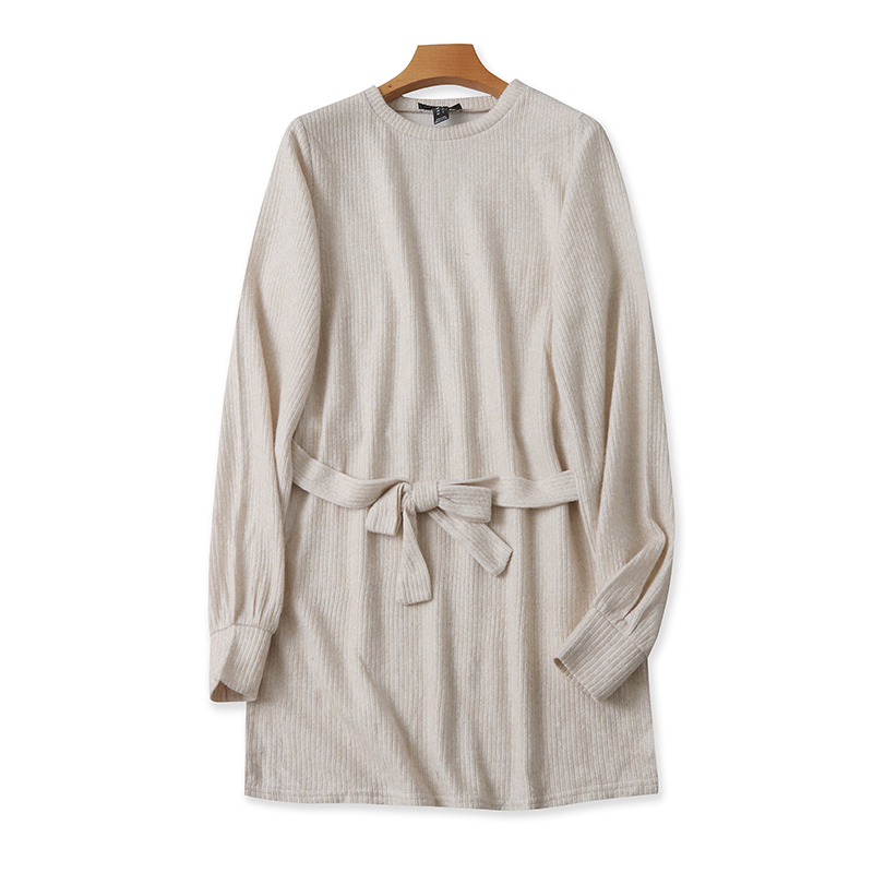 长袖针织连衣裙 春秋新款外贸女装百搭套头宽松显瘦系带裙子17404