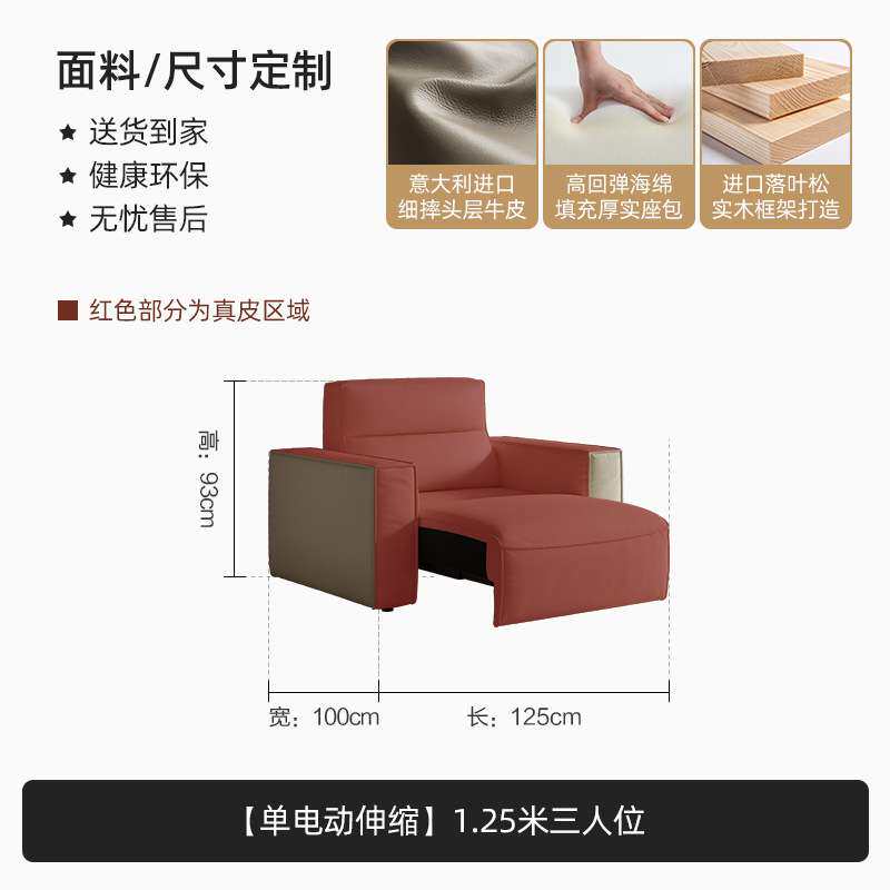 多功能豆腐块沙发真皮电动沙发床极简意式客厅大小户型直排可伸缩