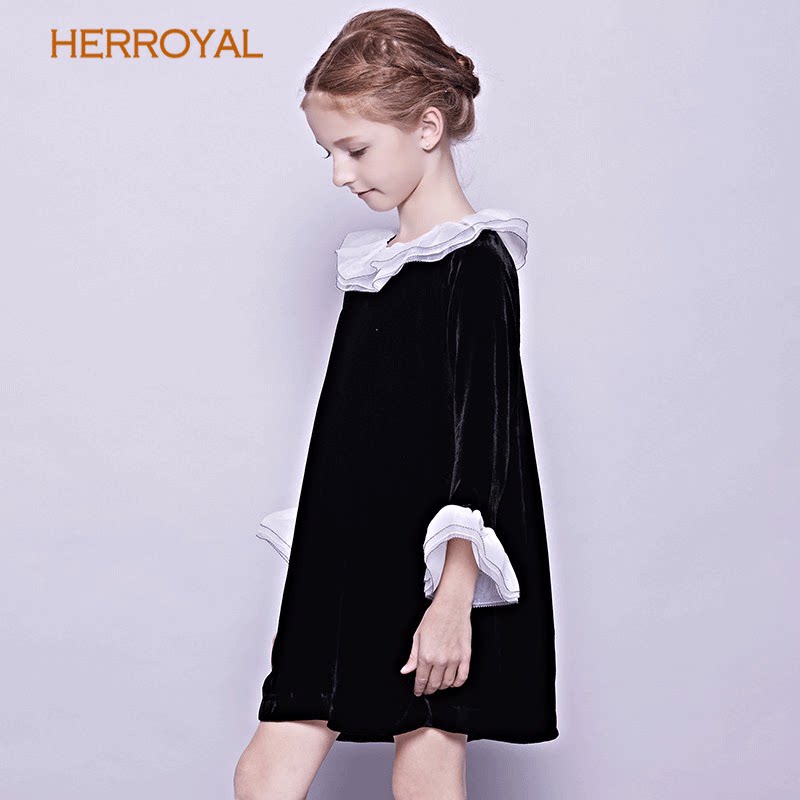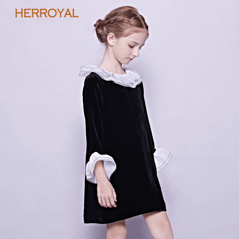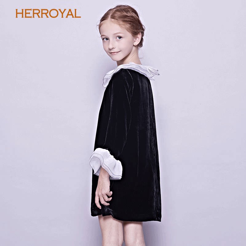 HERROYAL秋冬女童装真丝丝绒公主裙钢琴表演礼服裙丝绒裙亲子母女