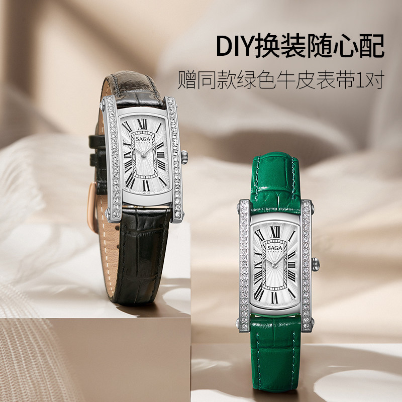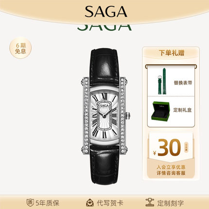 SAGA世家手表女复古小方表轻奢小众时尚黑色经典方表送女生礼物