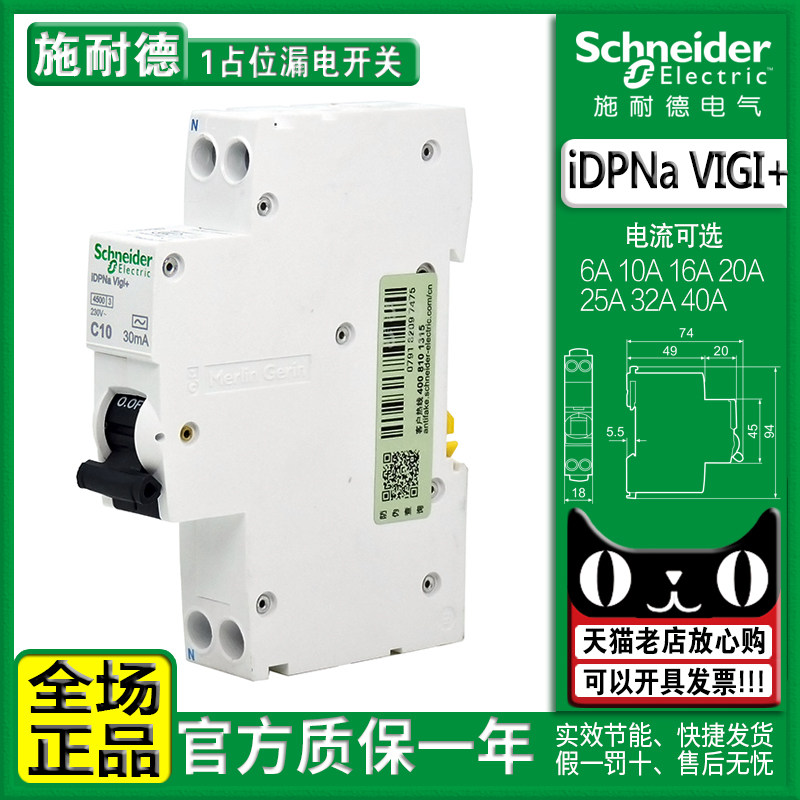 正品施耐德1P+N漏电32A断路器开关短路器IDPNa VIGI C10A 20A空开