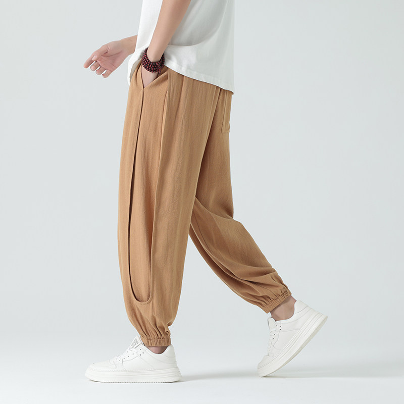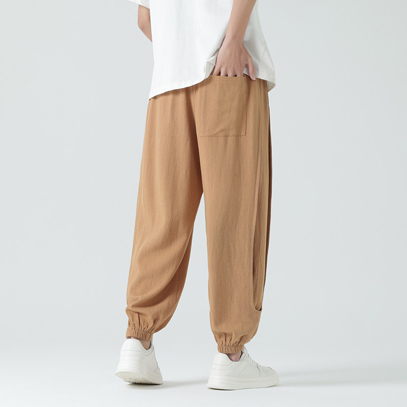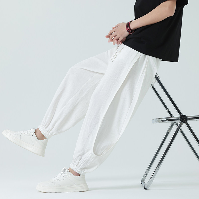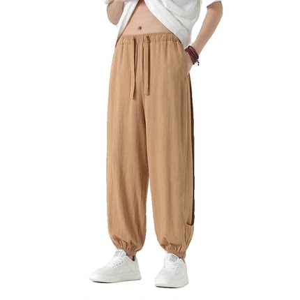 中国风春夏休闲棉麻休闲裤复古宽松束脚哈伦裤民族风特色唐装长裤