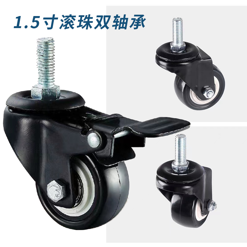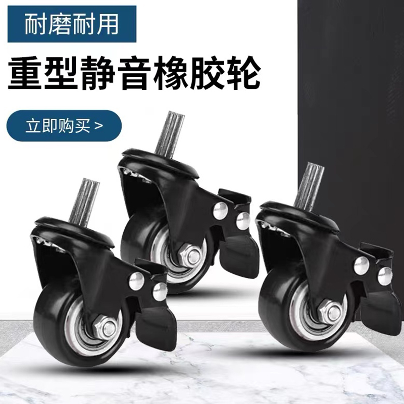 鱼缸架万向轮一套四个2个煞车轮2个通用轮丝口滚轮聚氨酯轮