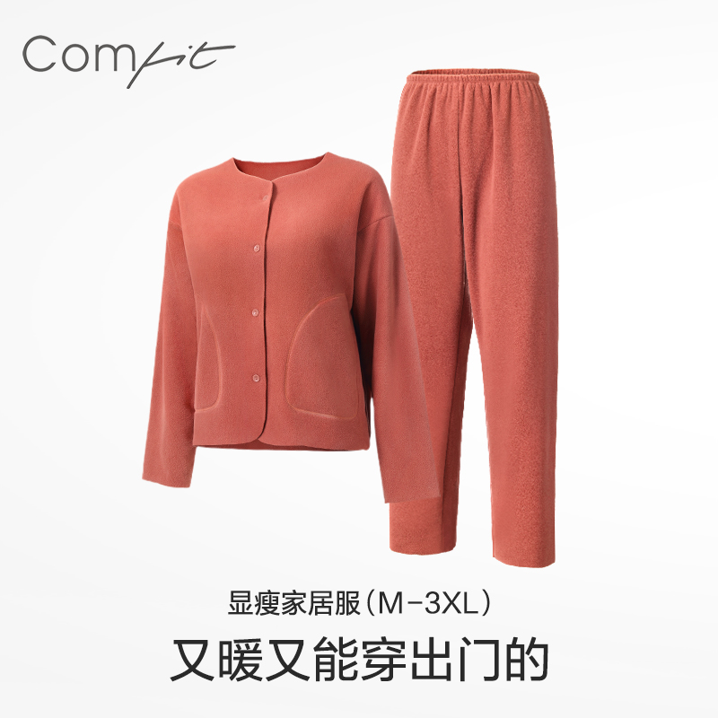 Comfit摇粒绒家居服套装女可外穿加厚暖绒大码简约睡衣CLW0008