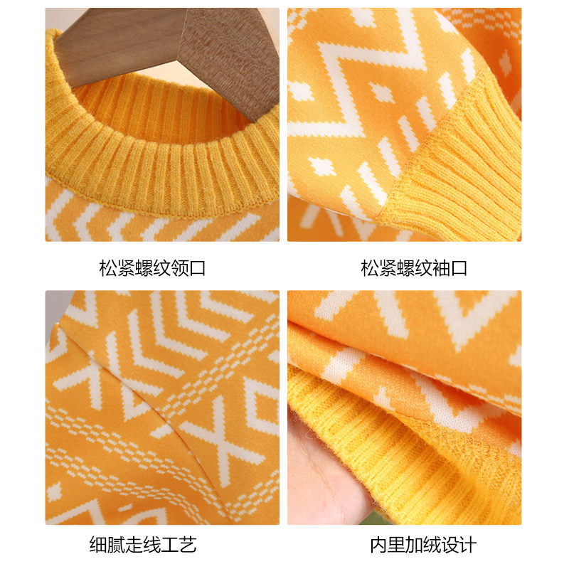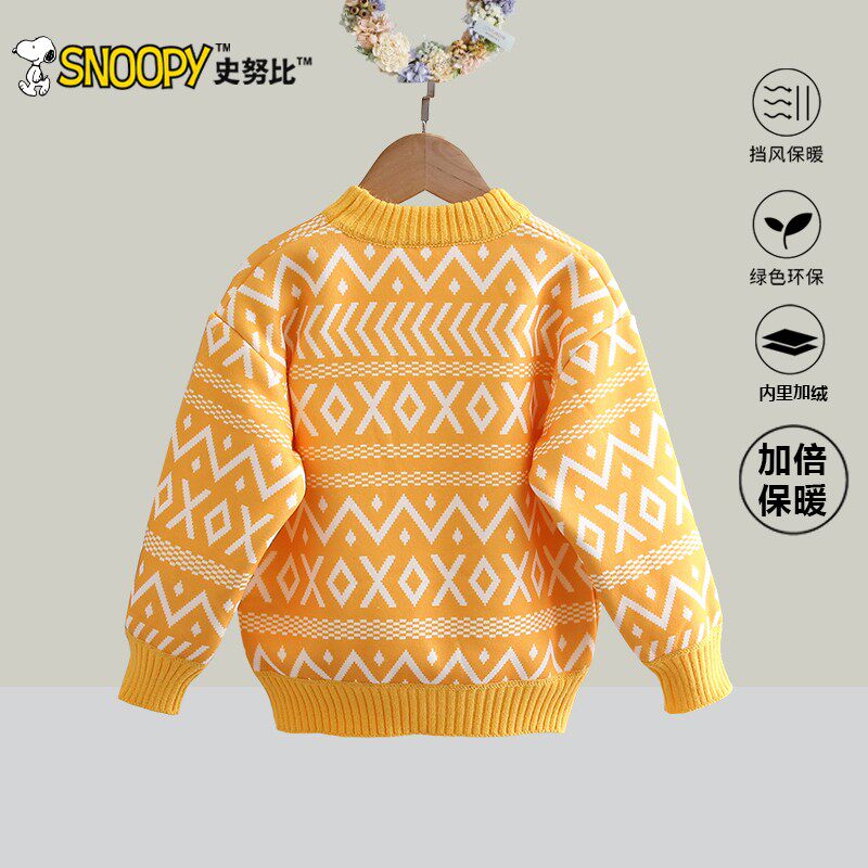 史努比女童秋冬加绒加厚毛衣小男孩保暖针织衫儿童套头衫打底上衣