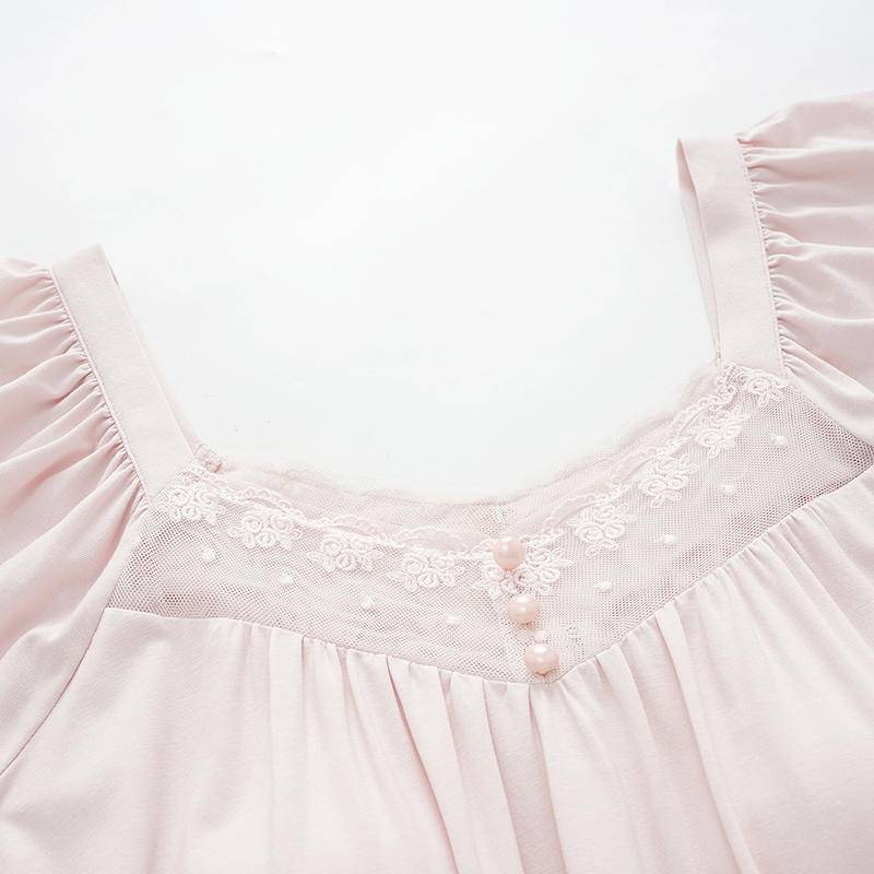 SLEEPTIGHT睡裙女款夏季小飞袖甜美蕾丝莫代尔带胸垫纯欲风睡衣裙