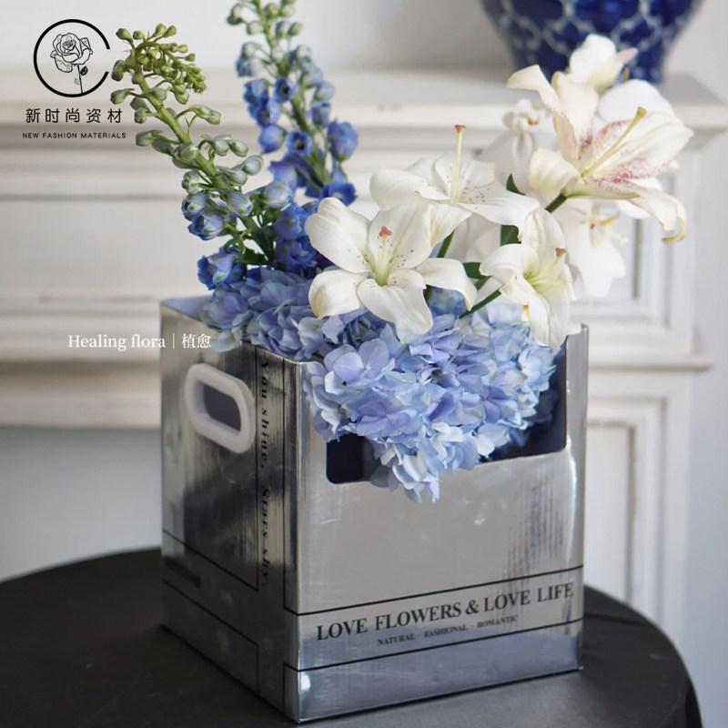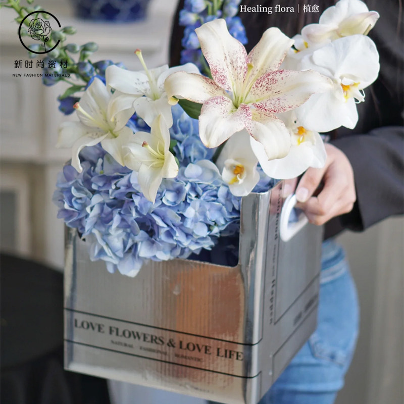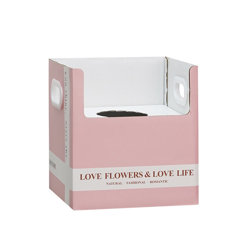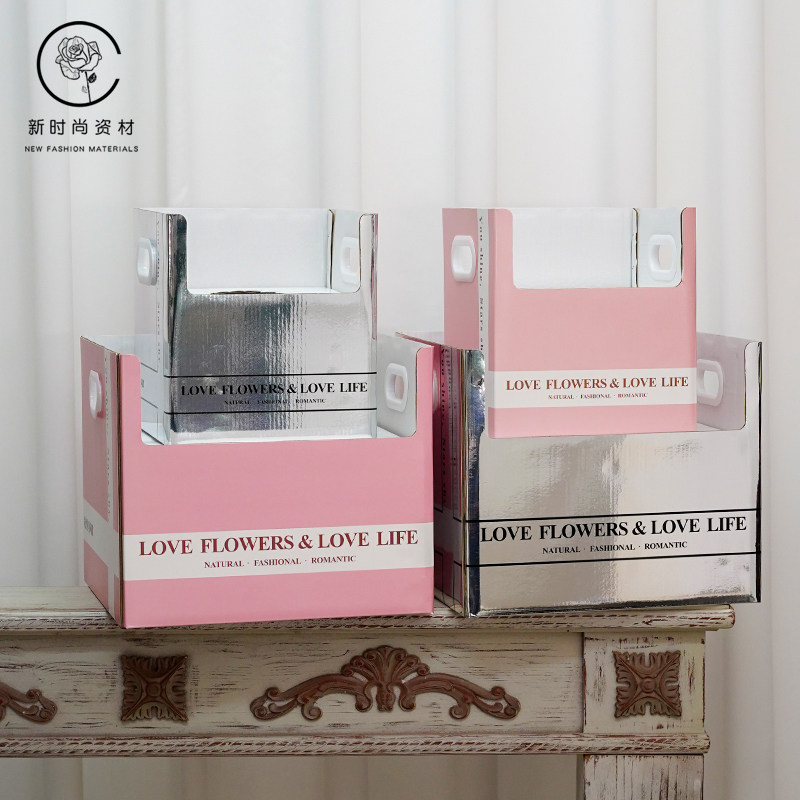 简约双把手花篮盒鲜花花束手提盆栽礼盒花艺花店玫瑰花手提包装盒