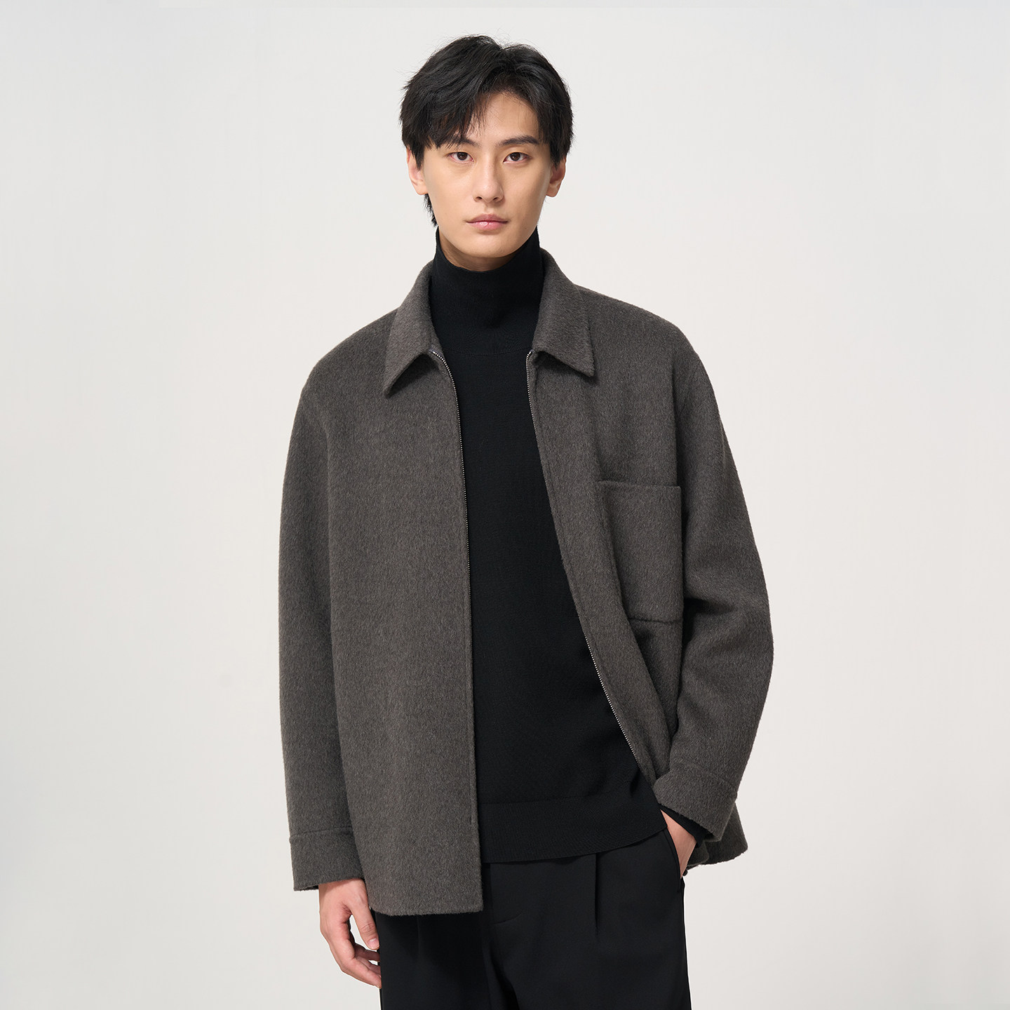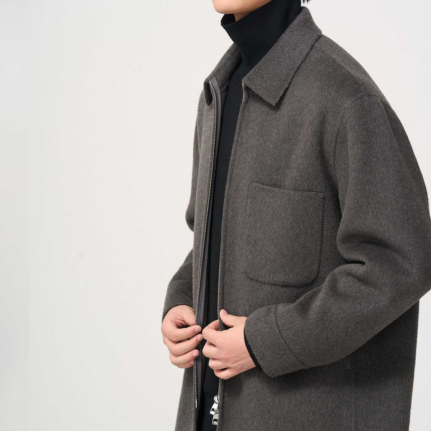 牦牛绒骆驼绒桑蚕丝双面呢子大衣男士翻领加厚衬衫款夹克毛呢外套