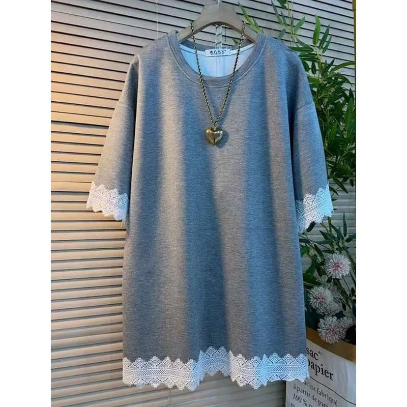 新款胖mm蕾丝短袖拼接T恤女300斤大码中长款宽松遮肉休闲显瘦上衣