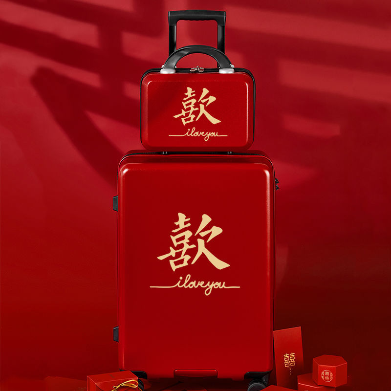 行李箱女红色结婚陪嫁子母箱静音大容量拉杆箱旅行登机箱结实耐用