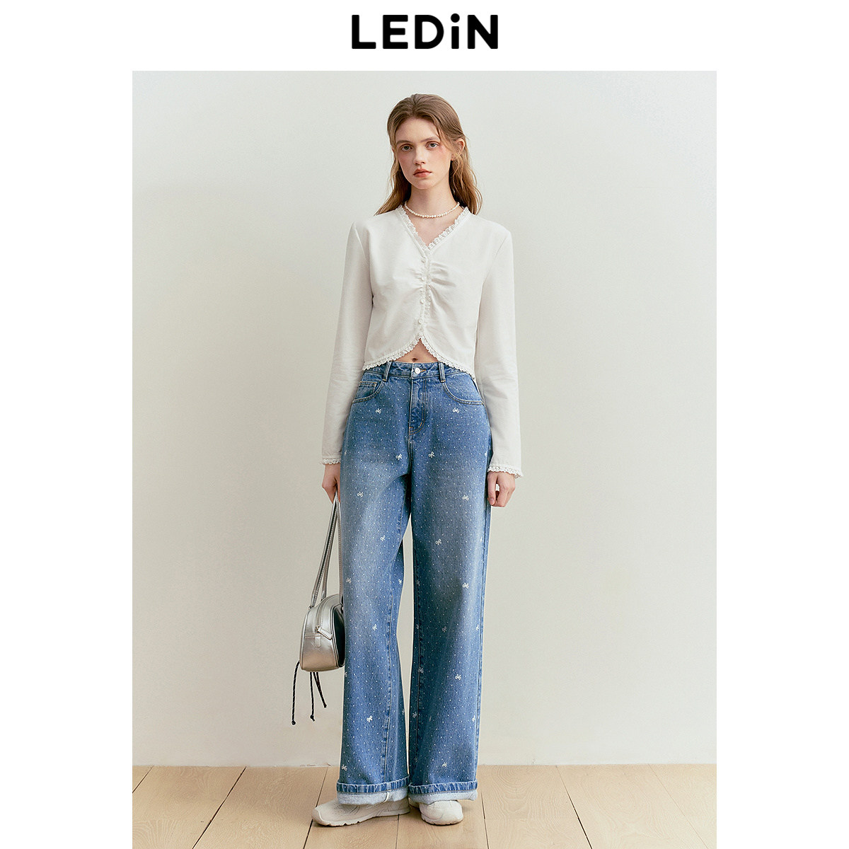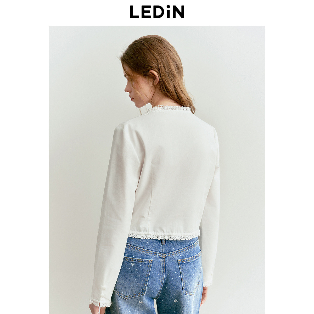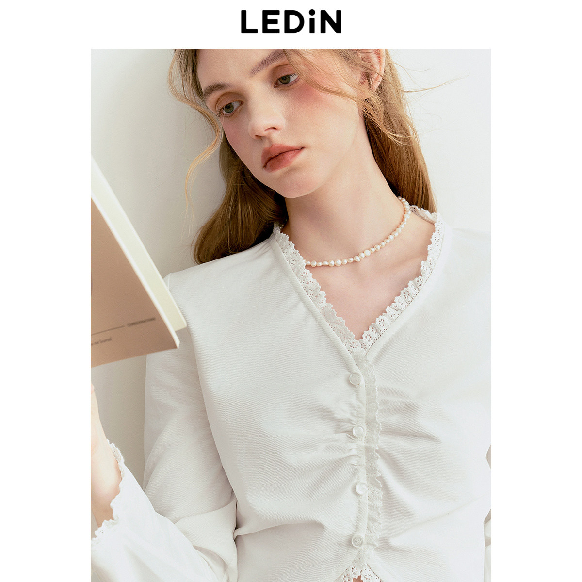 乐町韩系清甜胸部抽褶设计白色上衣2025春季新款精致花边袖雪纺衫