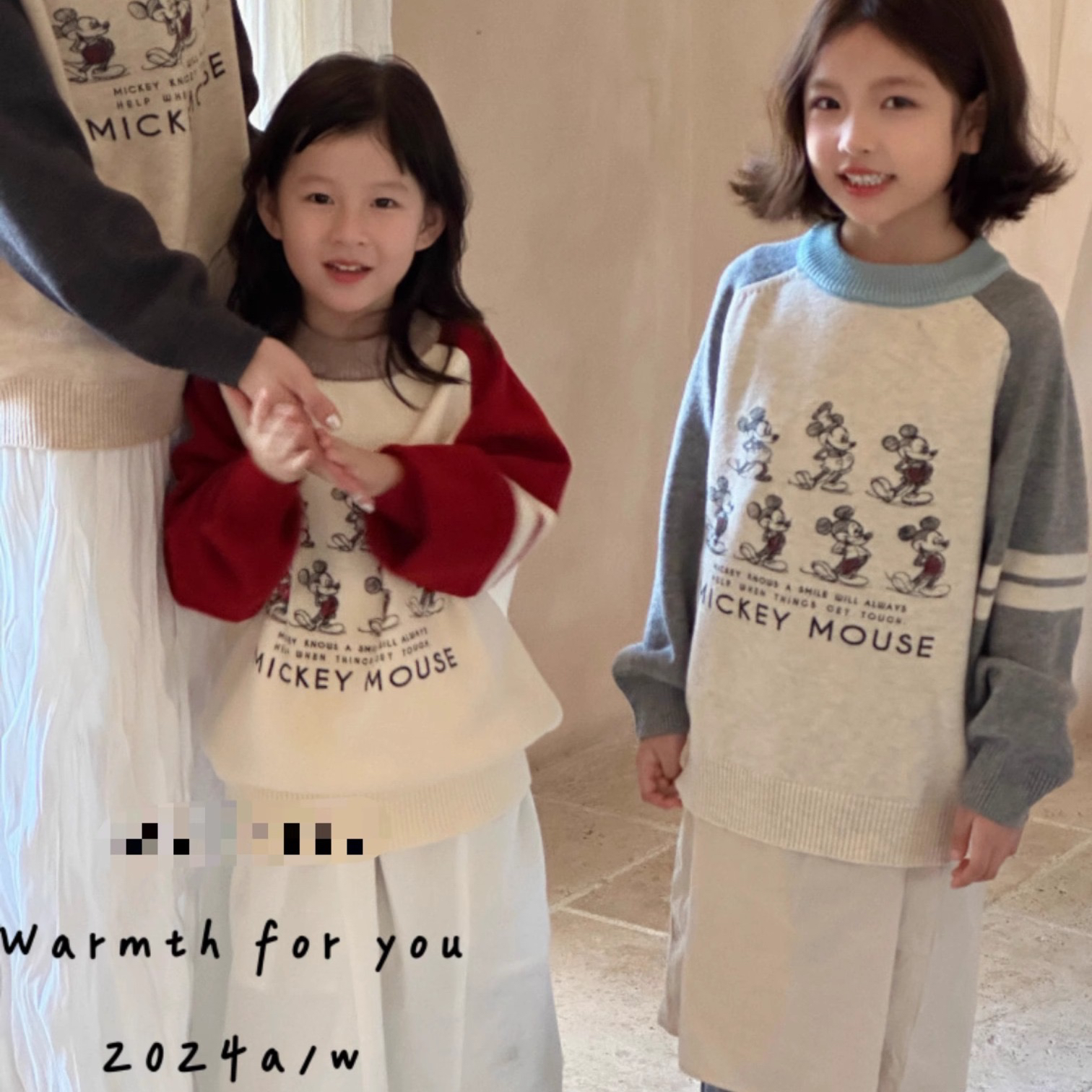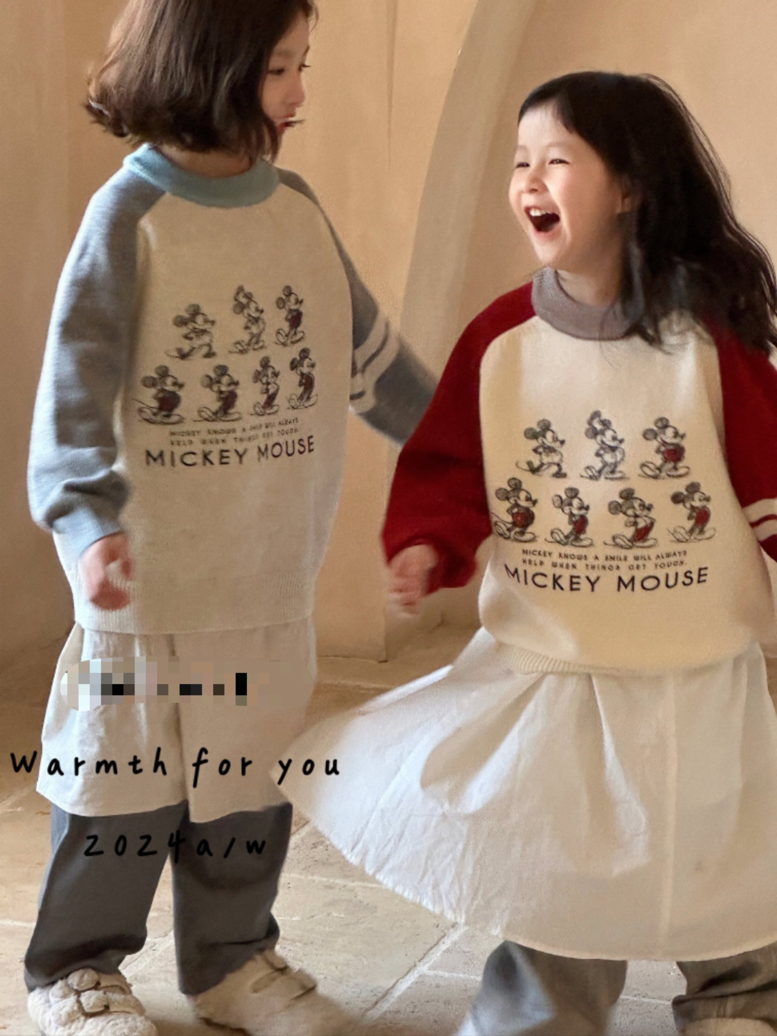 波拉韩国童装男女童毛衣秋冬款儿童套头圆领插肩袖针织衫羊毛衫