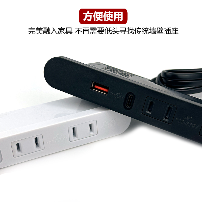 嵌入式床头插座排插隐藏带USB充电日式带C口床头柜茶几内嵌接线板