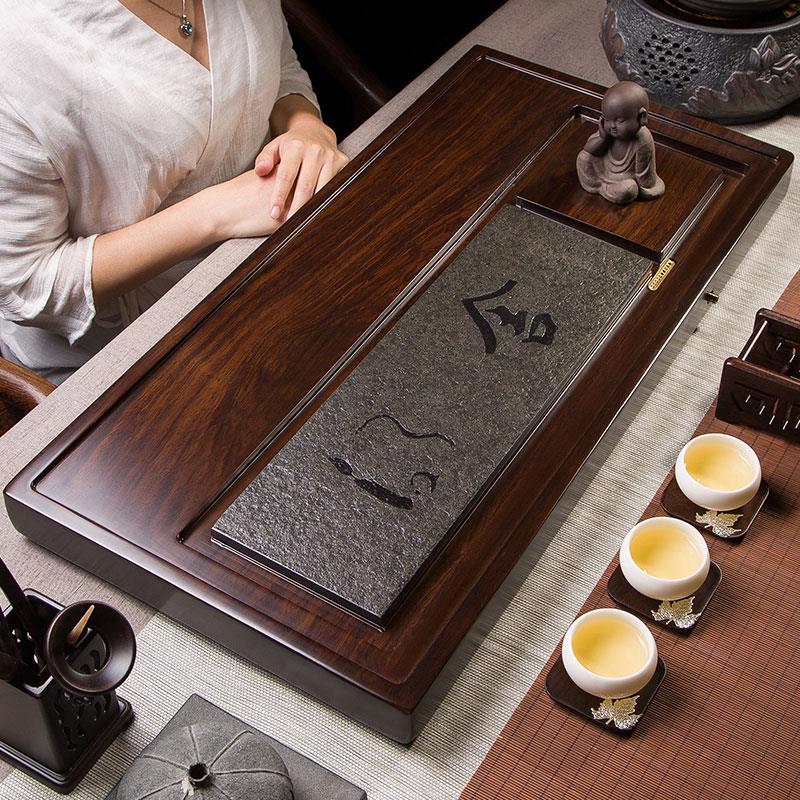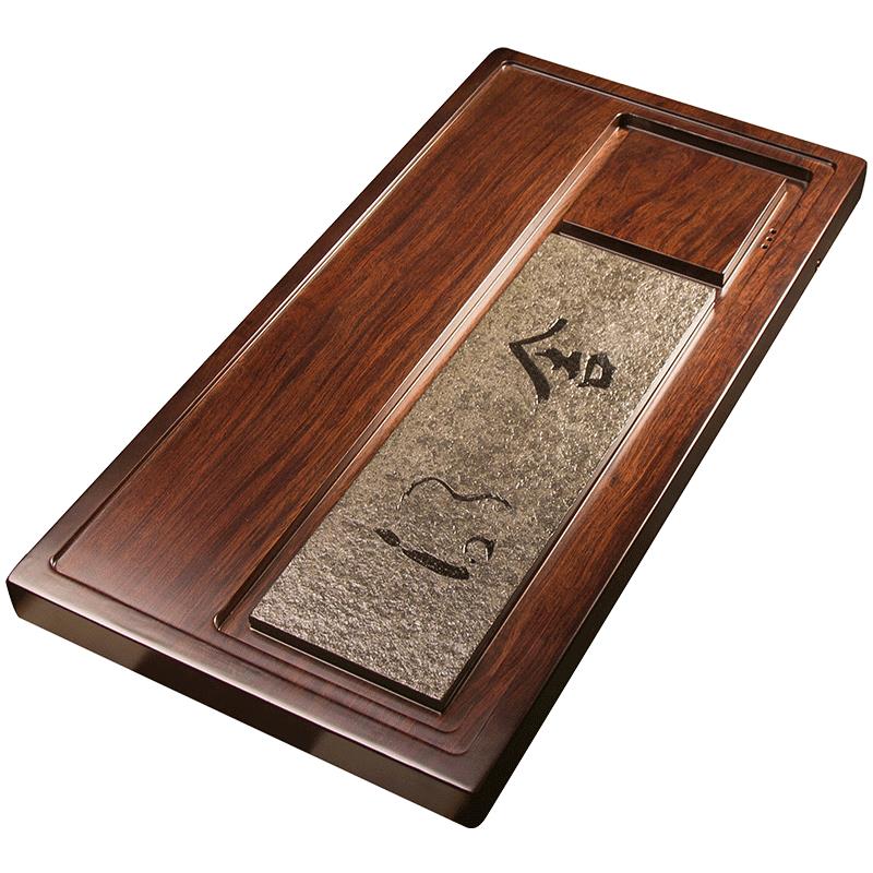 黑檀木茶盘实木家用原木茶托排水乌金石茶台储水功夫茶具小型托盘