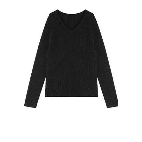 宽松V领黑色毛衣女慵懒风秋季新款高级感长袖女士针织衫外穿上衣