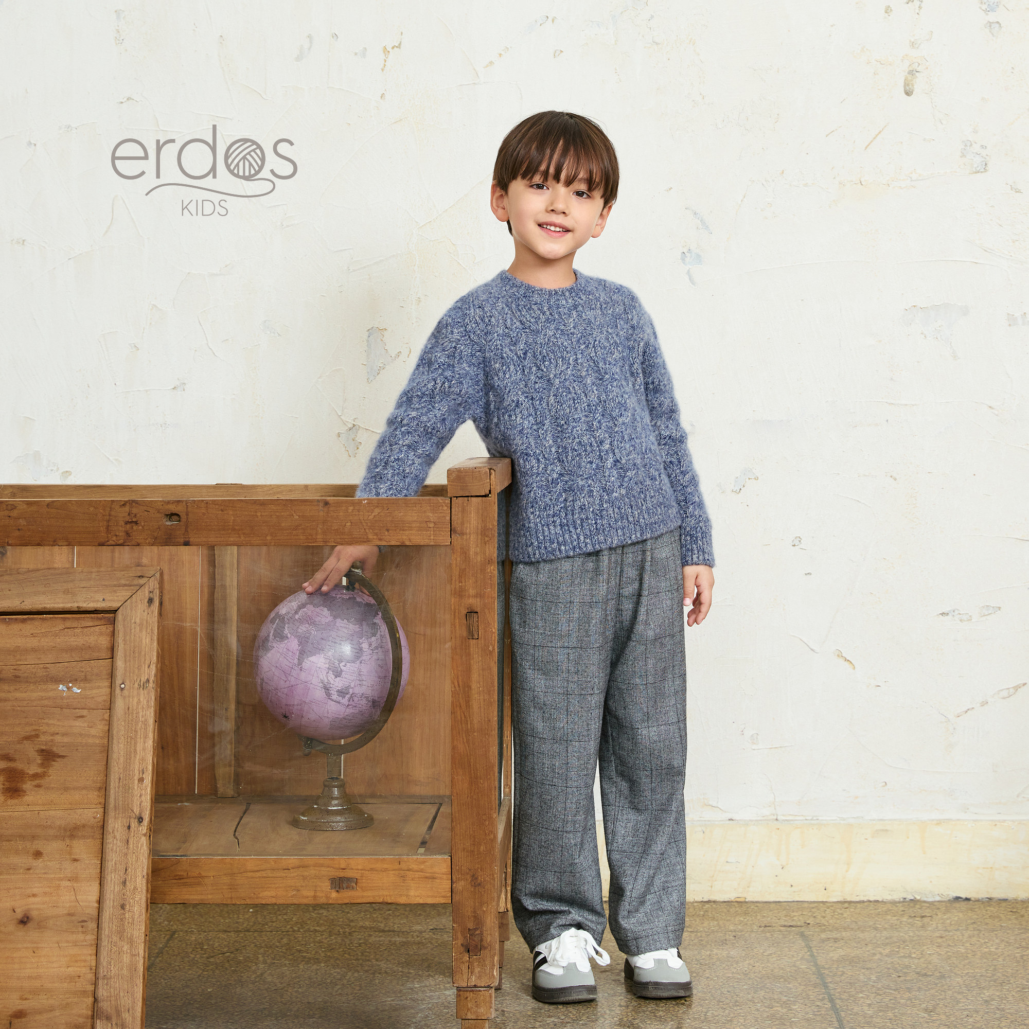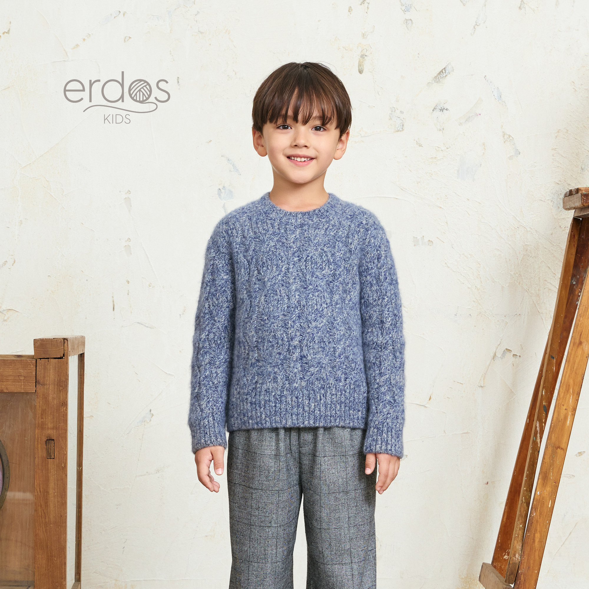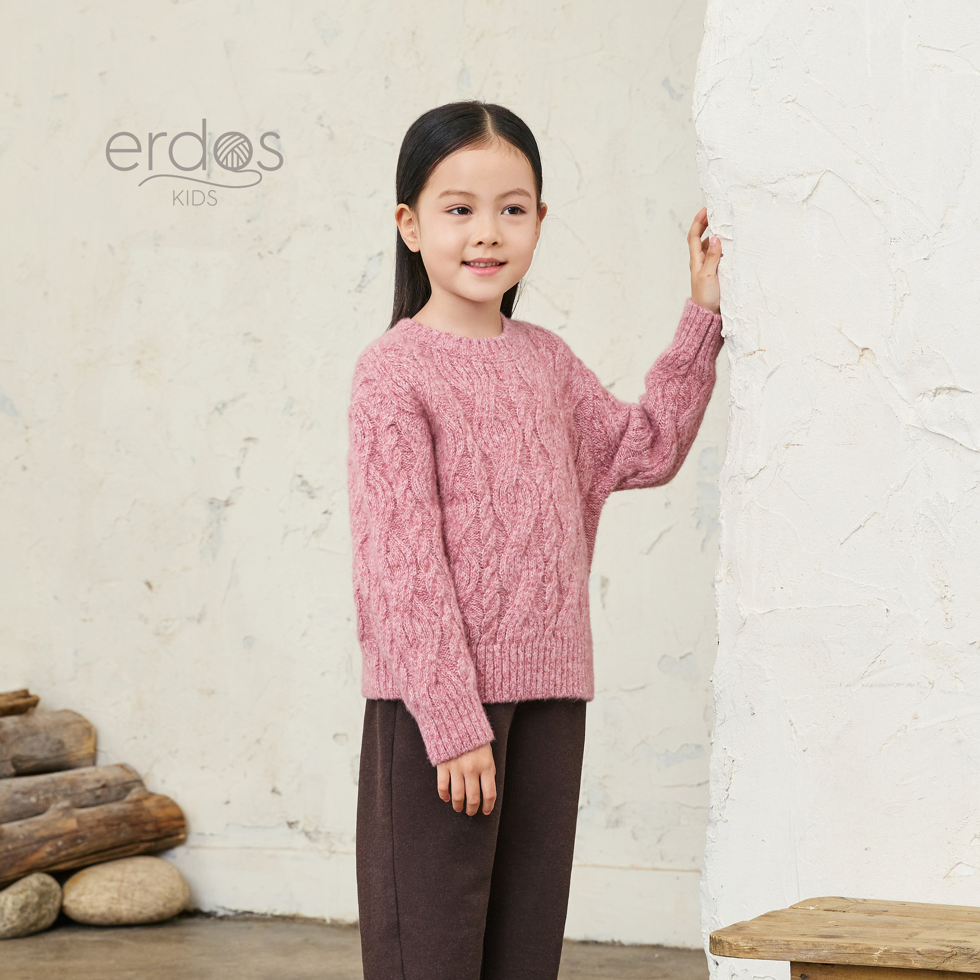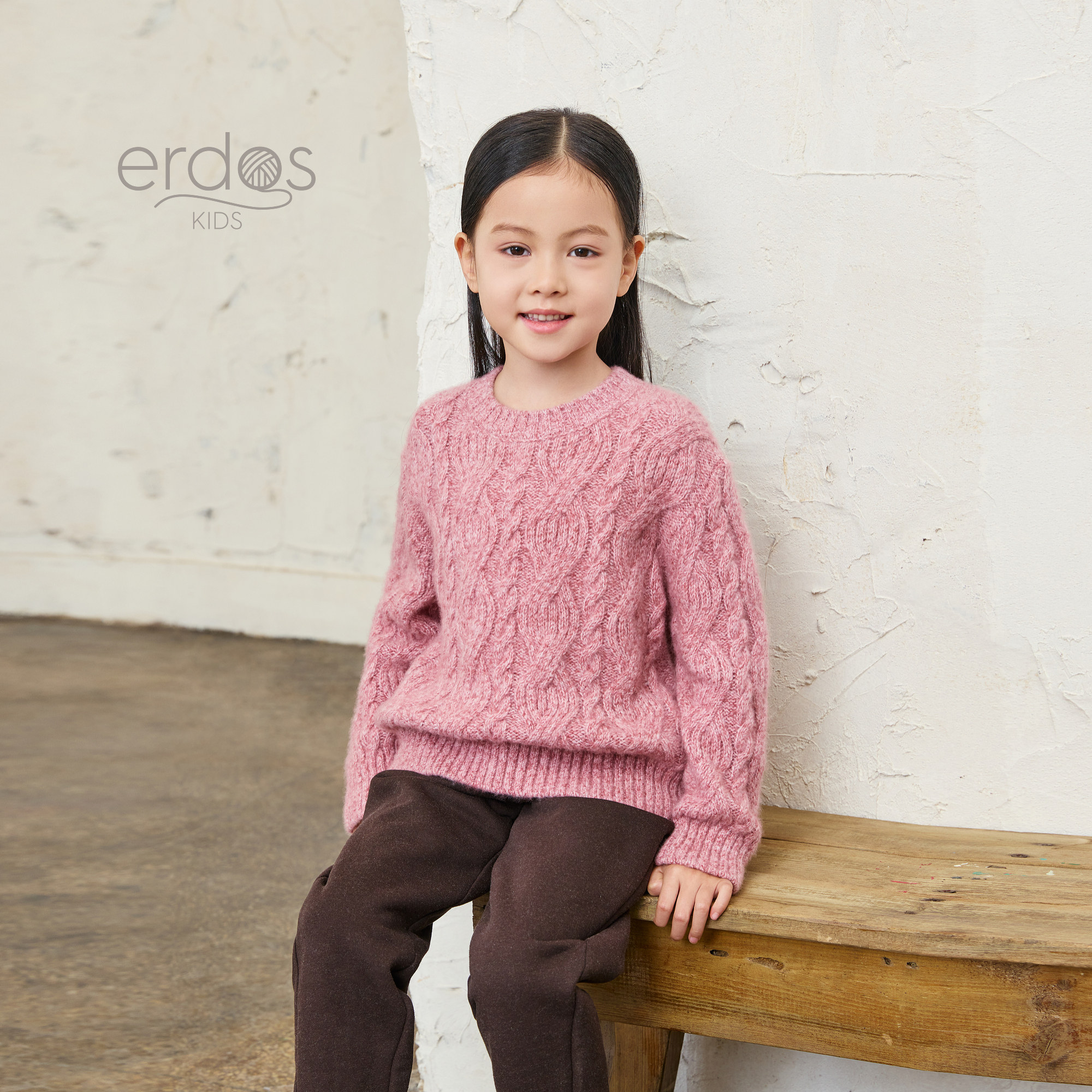 erdosKIDS 鄂尔多斯童装25秋冬新品圆领绞花儿童针织纯色长袖套衫