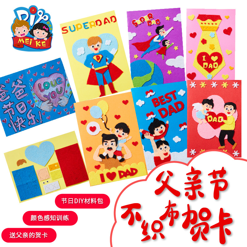 父亲节手工diy儿童不织布贺卡手工制作材料包幼儿园小学生礼物