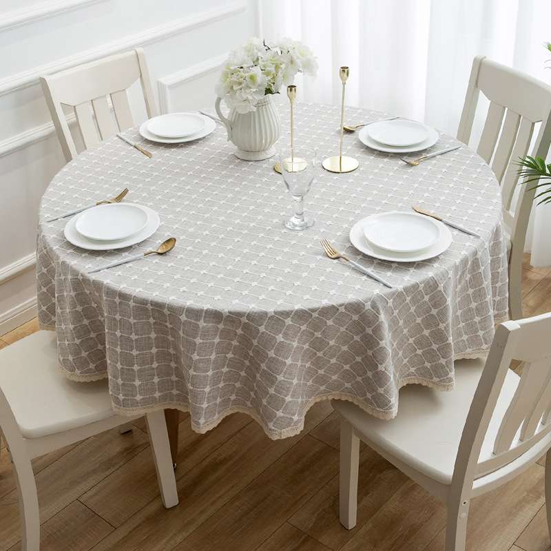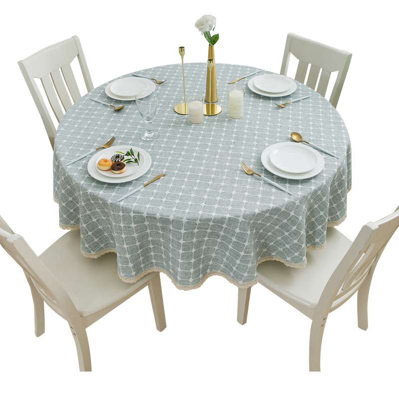 加厚格子棉麻圆桌桌布布艺圆形北欧餐桌布台布一件代发亚马逊跨境