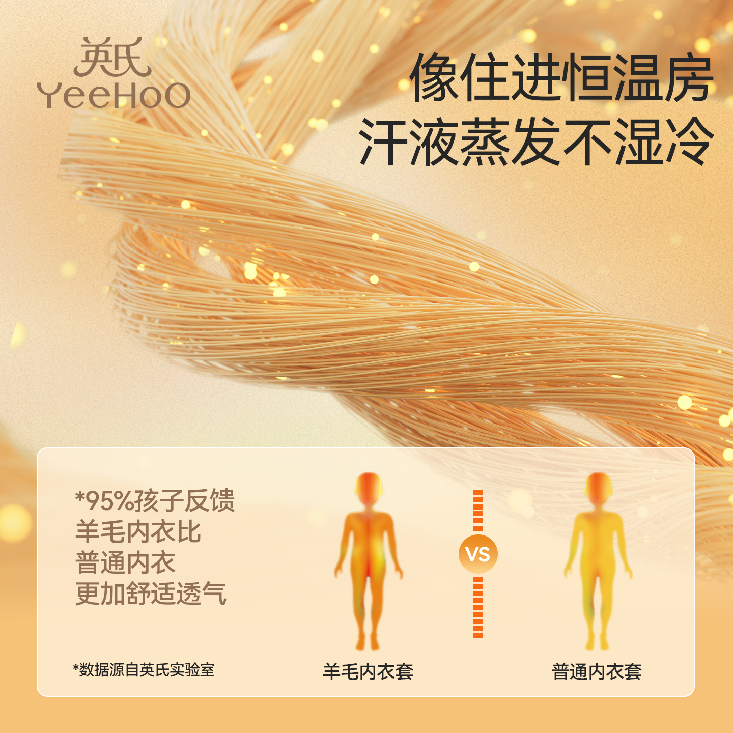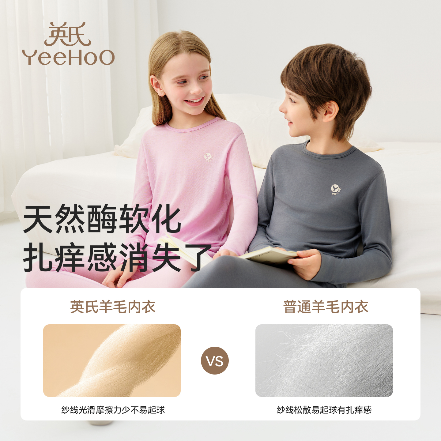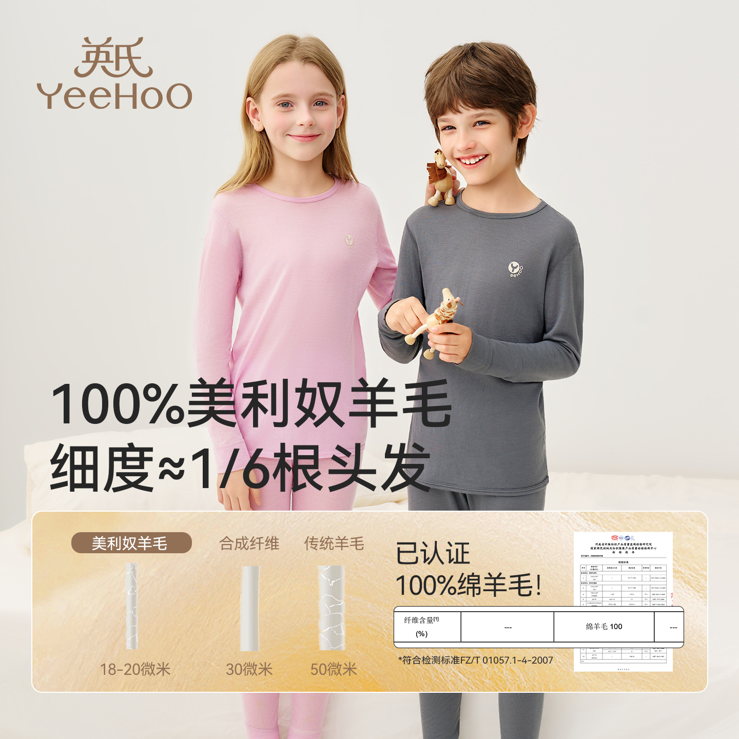 【纯羊毛】英氏儿童秋衣秋裤羊毛保暖内衣套装2025秋冬新款家居服