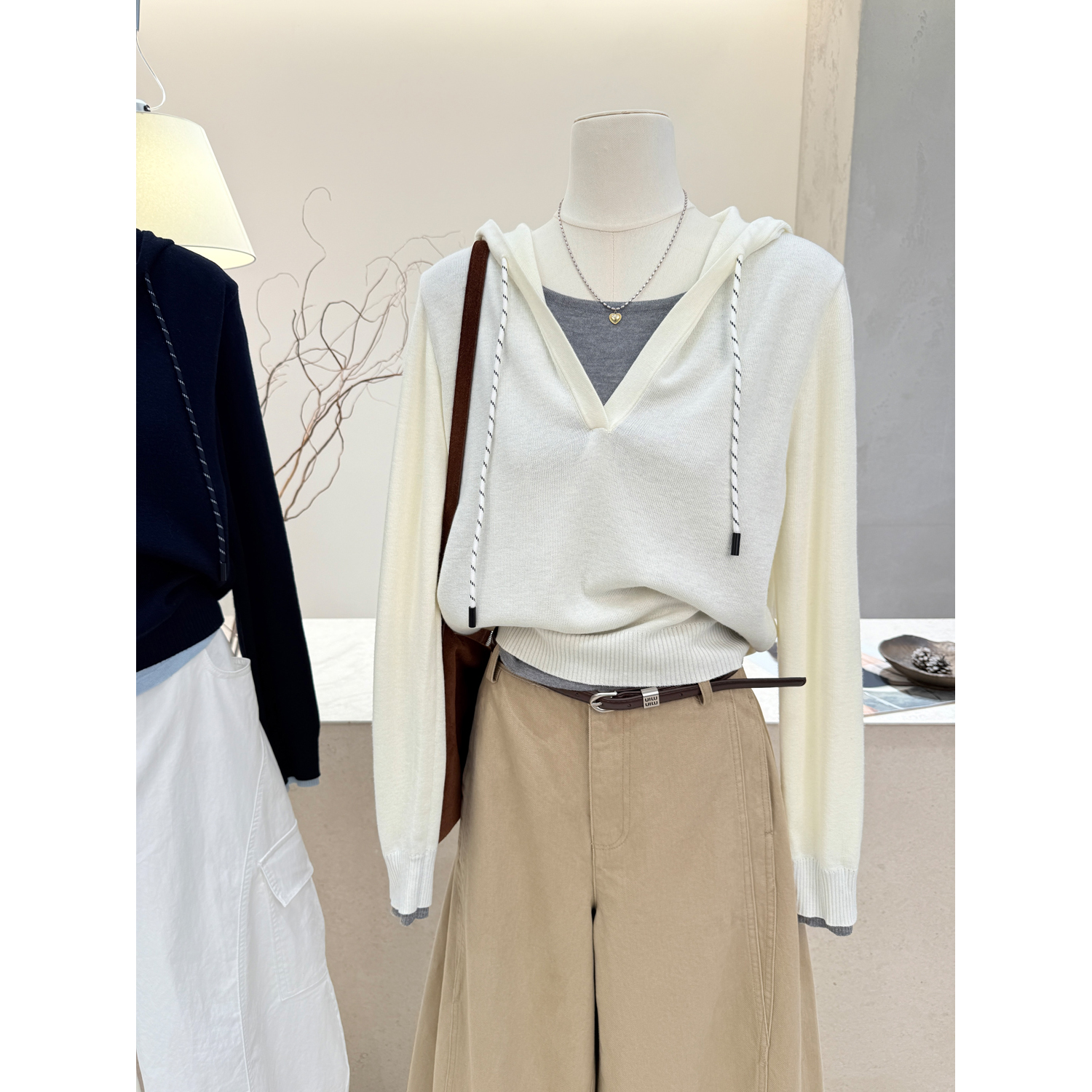 小哲 设计感假两件拼接针织衫连帽长袖女秋季新款显瘦百搭上衣