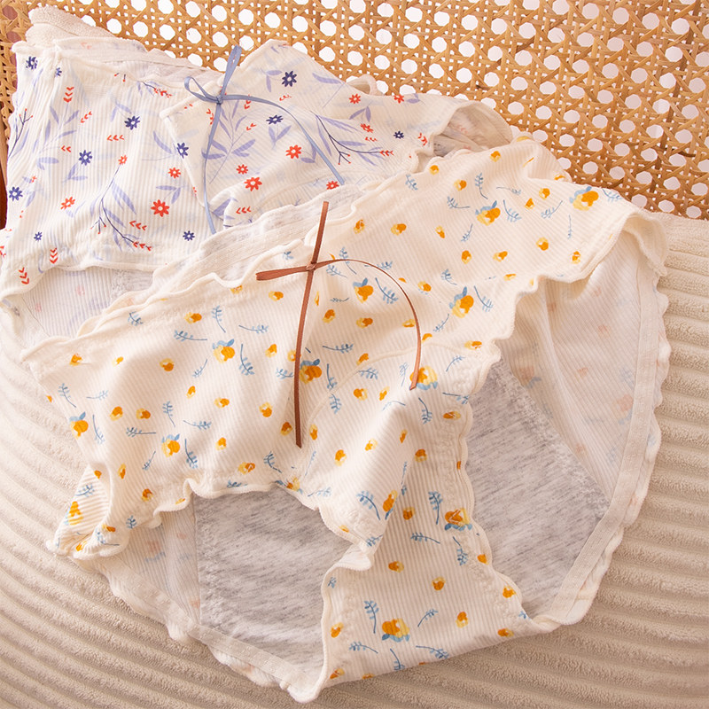 大码胖MM200斤生理裤碎花中腰经期前后防漏莫代尔棉内裤女