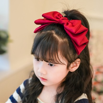 亲子气质在逃公主缎面酒红大蝴蝶结儿童顶夹头饰女孩新年拜年发饰