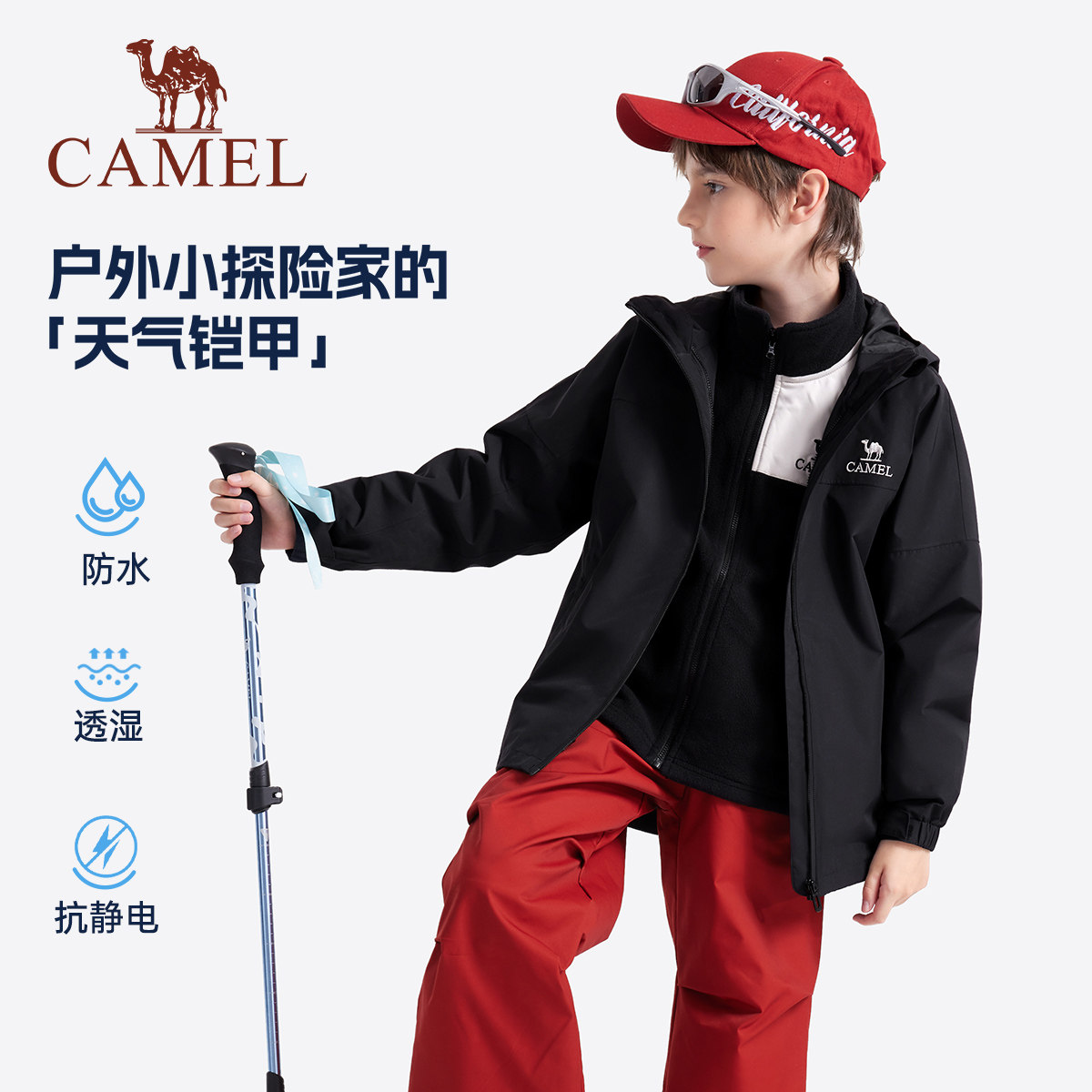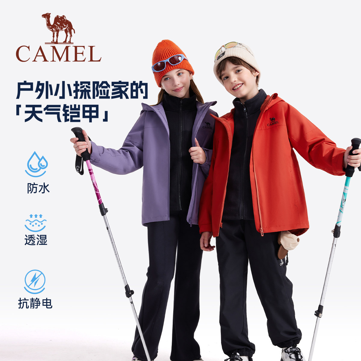 骆驼儿童三合一冲锋衣2025新款防风防水登山服滑雪服男童女童外套