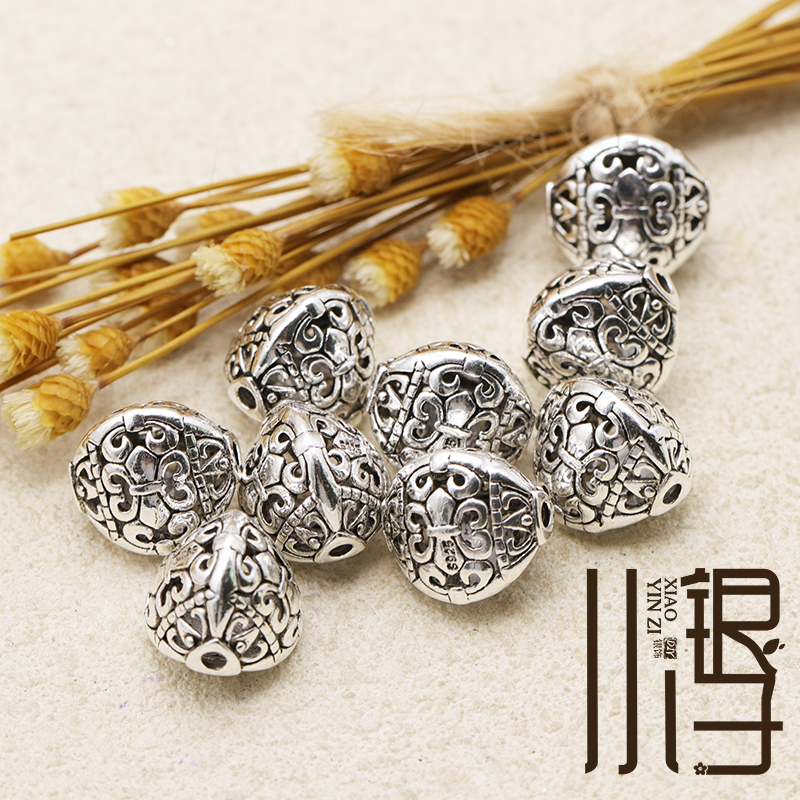 泰银镂空花纹三面珠隔珠直孔 水晶手链DIY串珠材料 S925纯银配件